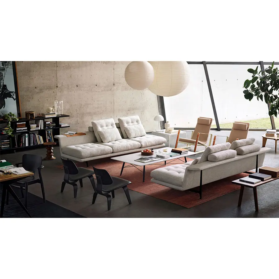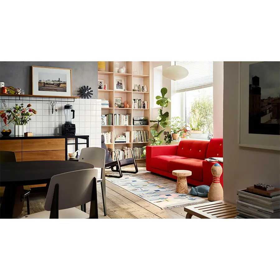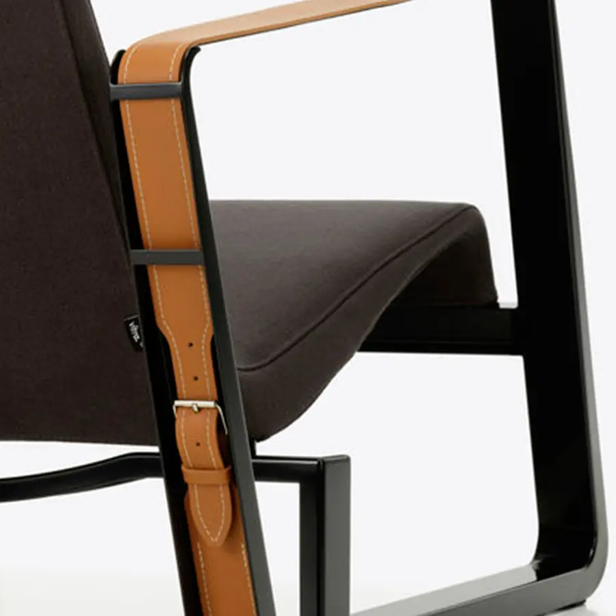 El sillón Cité, que se diseñó para un concurso destinado a equipar la residencia de estudiantes de la Cité Universitaire de Nancy, es una de las primeras obras maestras de Prouvé. Este dinámico sillón, con sus característicos patines de chapa de acero con revestimiento en polvo y sus anchas cintas de cuero como reposabrazos, fue utilizado por el propio Prouvé en el cuarto de estar de su casa. Sus amplias dimensiones y un tapizado acogedor contribuyen a proporcionar un confort excepcional.