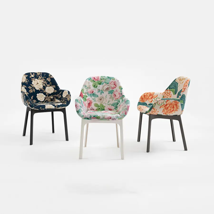 La silla Clap de Patricia Urquiola viene en ocho combinaciones de colores y presenta asientos con tela hexagonal elegante y funcional que puede satisfacer las más variadas necesidades de mobiliario. Tiene un marco de plástico muy resistente, el resultado de la última tecnología industrial.