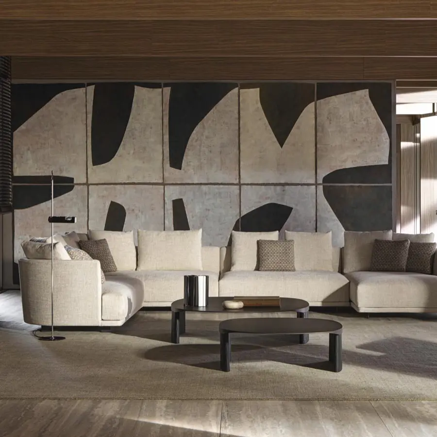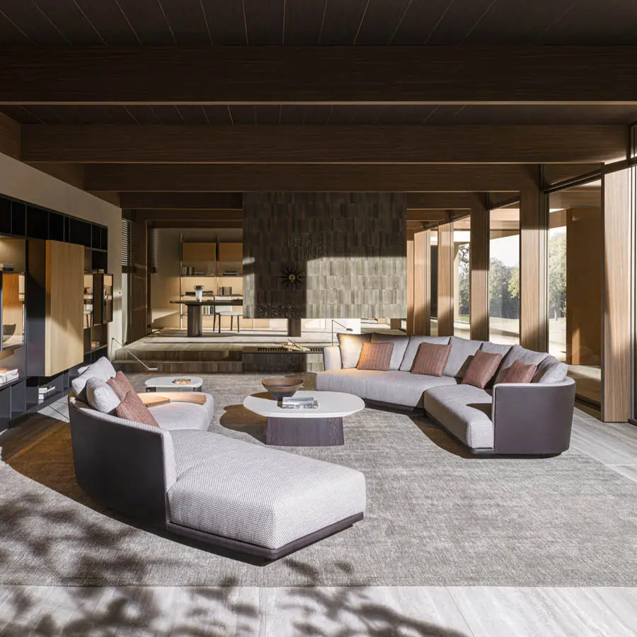 Sofá Cleo, un nuevo diseño del arquitecto y director creativo Vincent Van Duysen para Molteni&C, es un sistema modular formado por varios elementos rectilíneos, angulares y autoportantes que permiten un gran número de composiciones aptas para todo tipo de viviendas. El corazón del proyecto es el marco, que se utiliza para cada componente individual. Una concha curvilínea armoniosa, que recuerda un lugar acogedor, que abraza el asiento y el respaldo sin interrupción. La carcasa, tapizada en tela o en piel, al igual que los cojines de los asientos, ofrece un gran confort.
