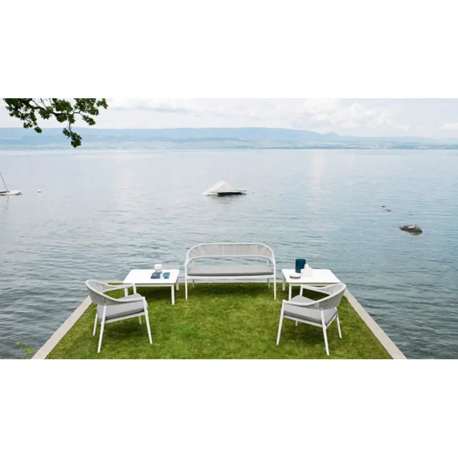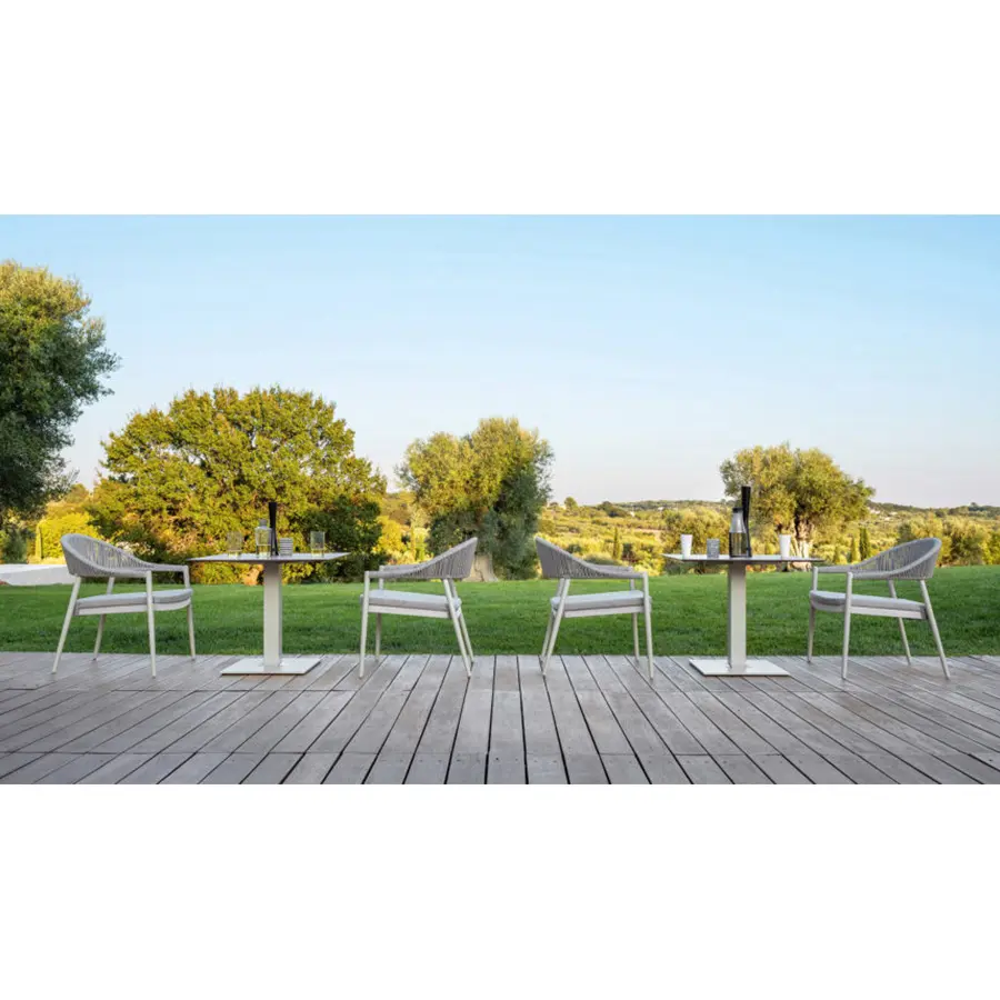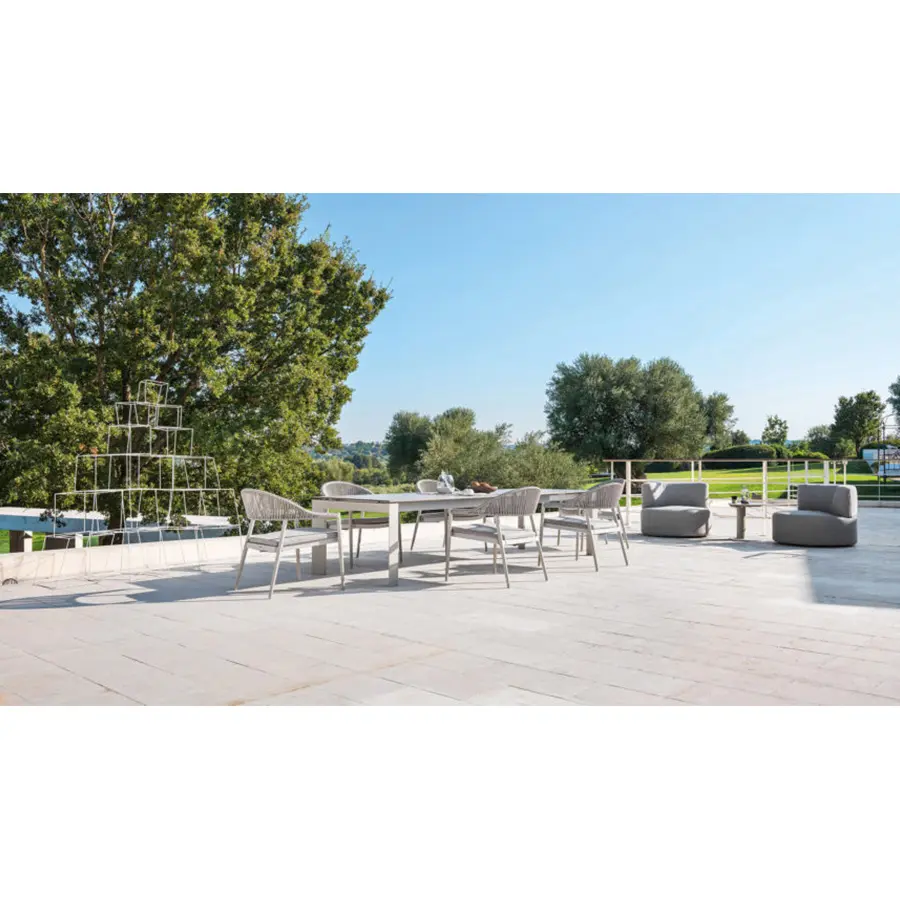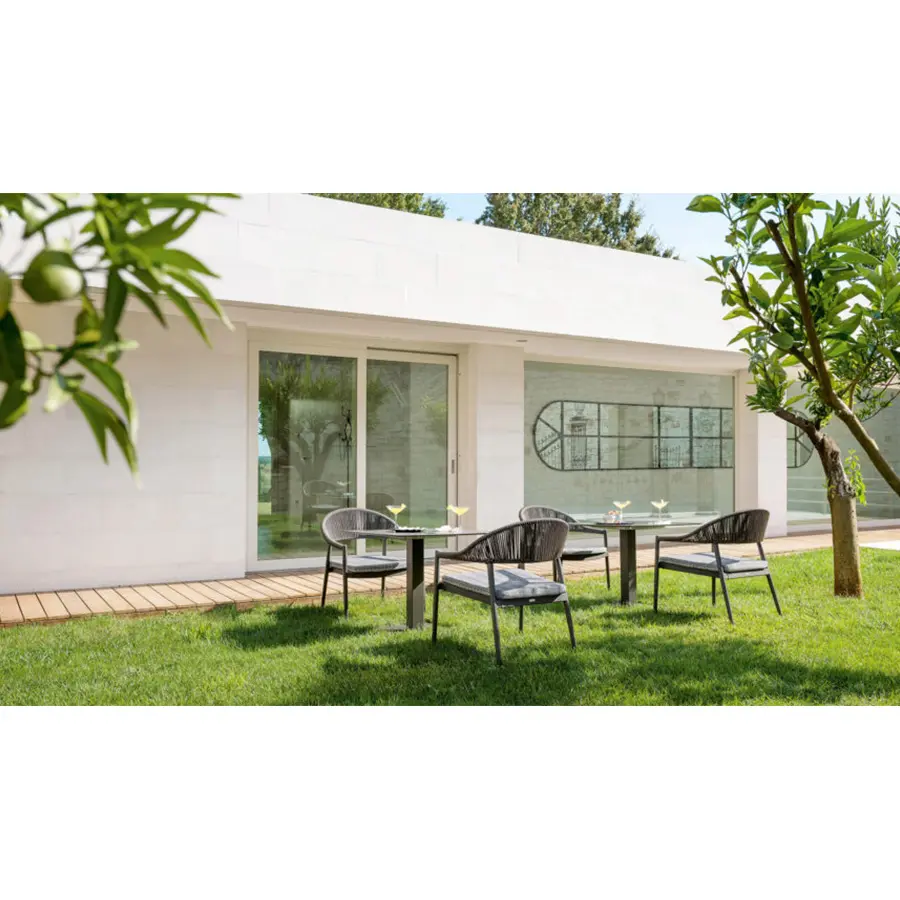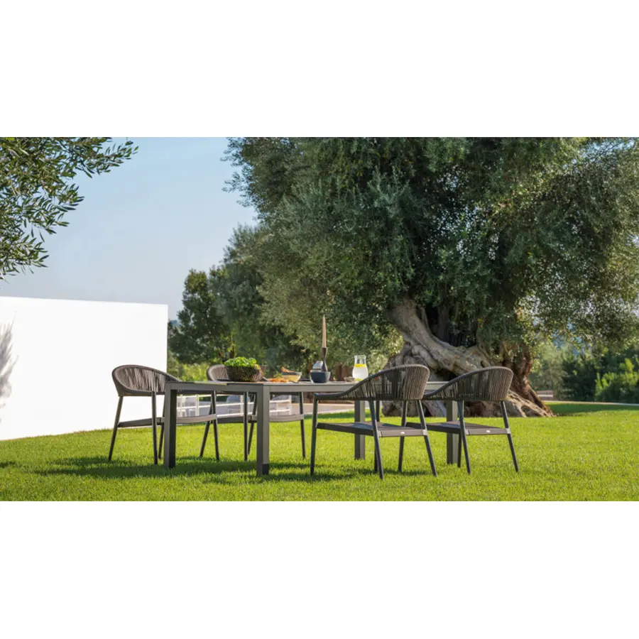 Los cómodos y espaciosos asientos combinan con mesas bajas (65 cm de altura): para aquellos que desean cenar cómodamente al aire libre y desean amueblar con estilo su jardín o terrazas.