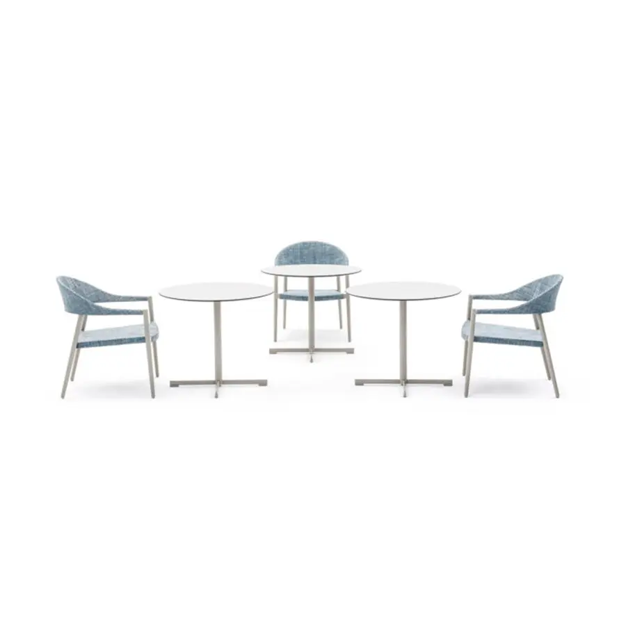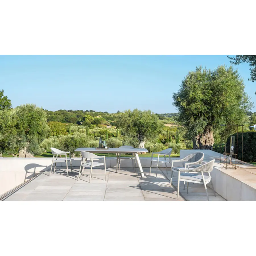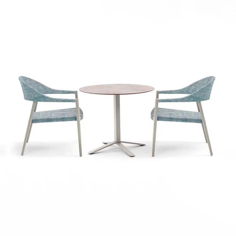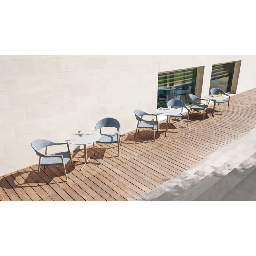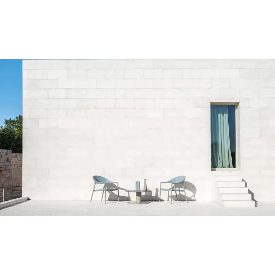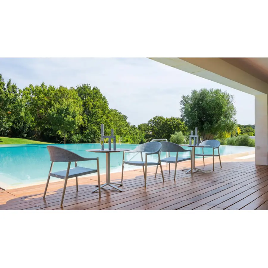 Sillón lounge de jardín apilable de aluminio con revestimiento en polvo. Asiento y respaldo en tejido técnico de PVC, llamado VAR # TEX, una patente exclusiva de Varaschin.