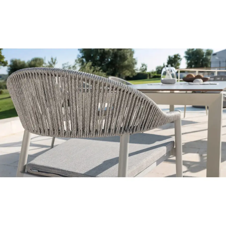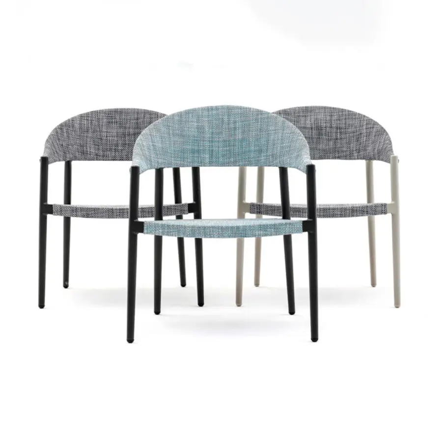 Asiento y respaldo del sillón de jardín inteligente disponibles en Textilene o cordón sintético tejido a mano.