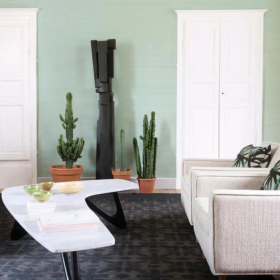 « La isla Coiba es la isla más grande en la costa pacífica de la provincia panameña de Veraguas ». Fruto de un saber artesanal único y preservado, Coiba reinterpreta la «Paja Japonesa». Con una densidad de trama de 30 a 40 fibras por pulgada (2,54 cm) y su extrema finura, la textura del abacá es sublimada por una urdimbre de nylon, aportando toda su modernidad a este suntuoso revestimiento. Las variaciones mates y naturales de cada fibra se mezclan con el brillo de la trama. Tejido a razón de 2 m por día, Coiba es uno de nuestros revestimientos excepcionales. Coiba es una «Paja japonesa Moderna» y es una de las mejores y más finas pajas del mundo.
