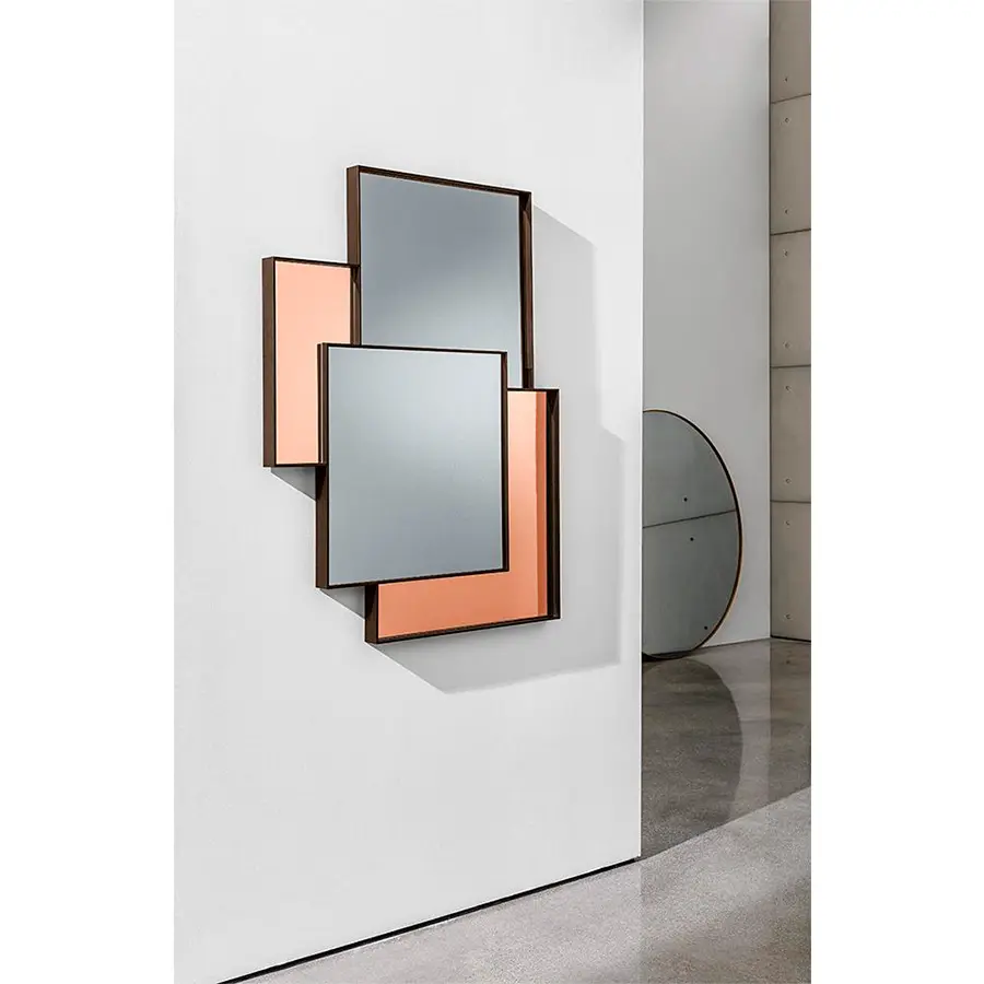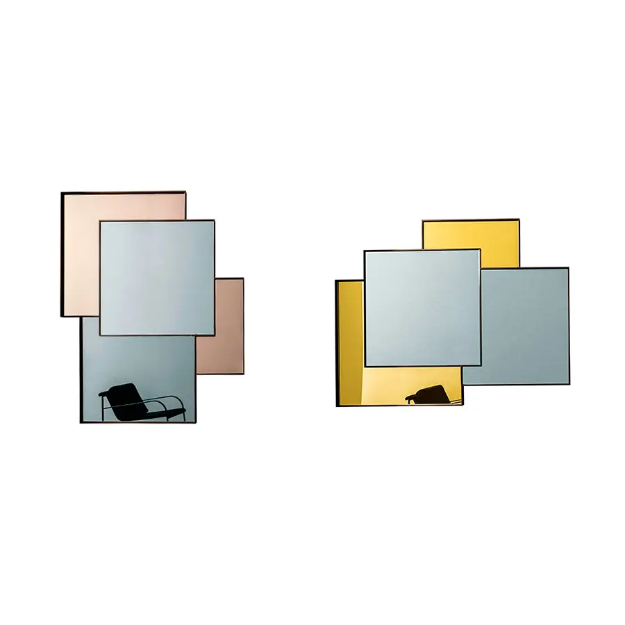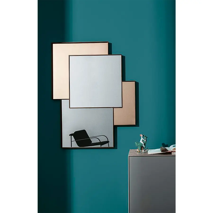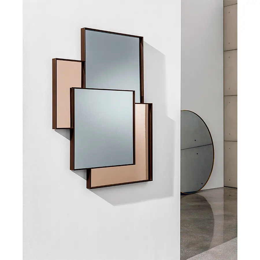 Combi hace abstractos los espacios como en una pintura gracias a los diversos reflejos y los diferentes tonos de espejo. La estructura de aluminio se separa pero también acompaña armoniosamente las diferentes partes como en un mosaico. El reflejo es el elemento que da importancia al espacio. Disponible en distintos tonos.