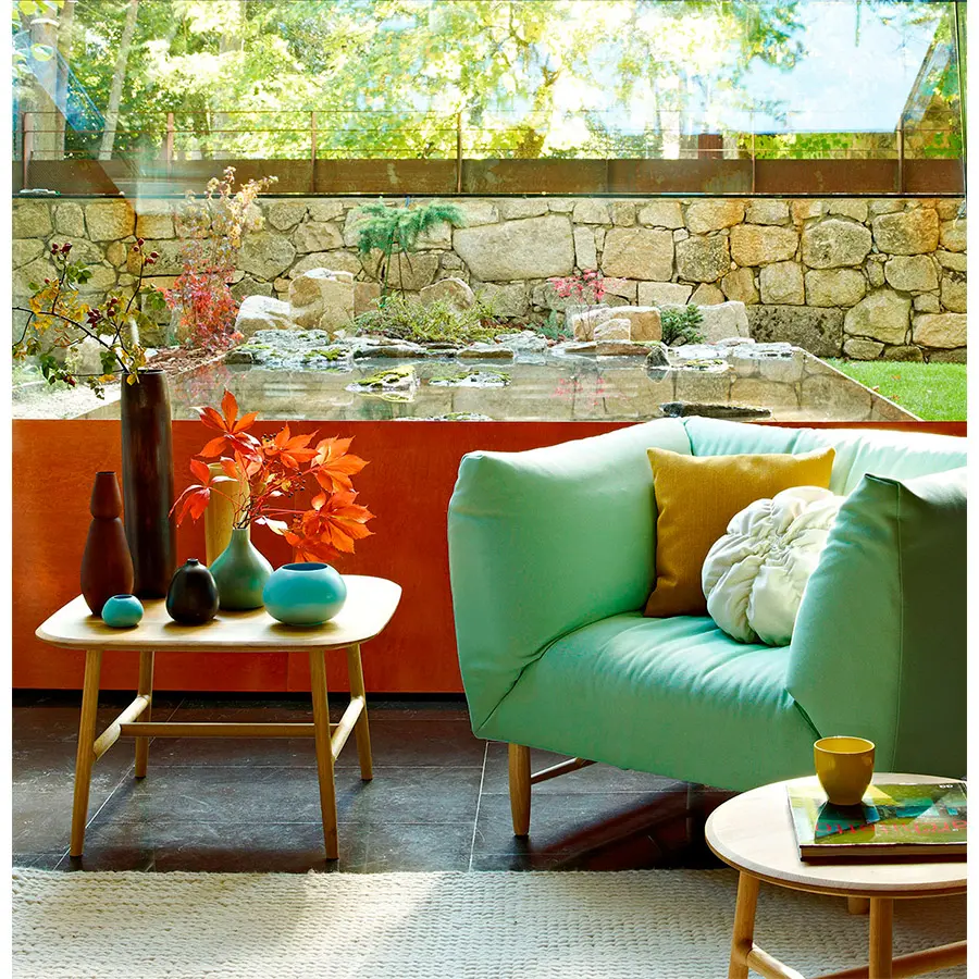 Dos tipos de brazo, 3 sillones, 12 sofás, 9 módulos diferentes y 1 ángulo, permiten componer una melodía a la medida de cada proyecto. Rafa García recomienda crear las composiciones angulares con cualquiera de las piezas de brazo alto, aunque también existe el ángulo recto.