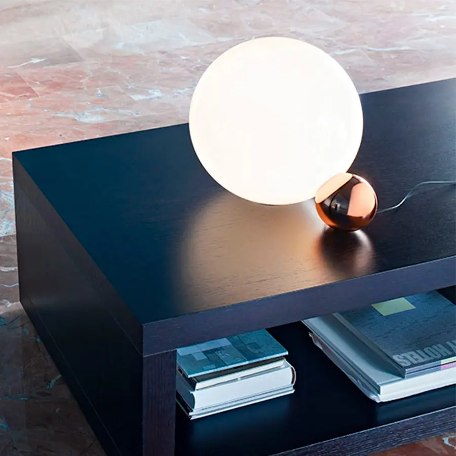 Perfectamente equilibrada, la lámpara de mesa Copycat de Flos, diseñada por Michael Anastassiades, consta de 2 hermosas esferas y emite una luz difusa suave.