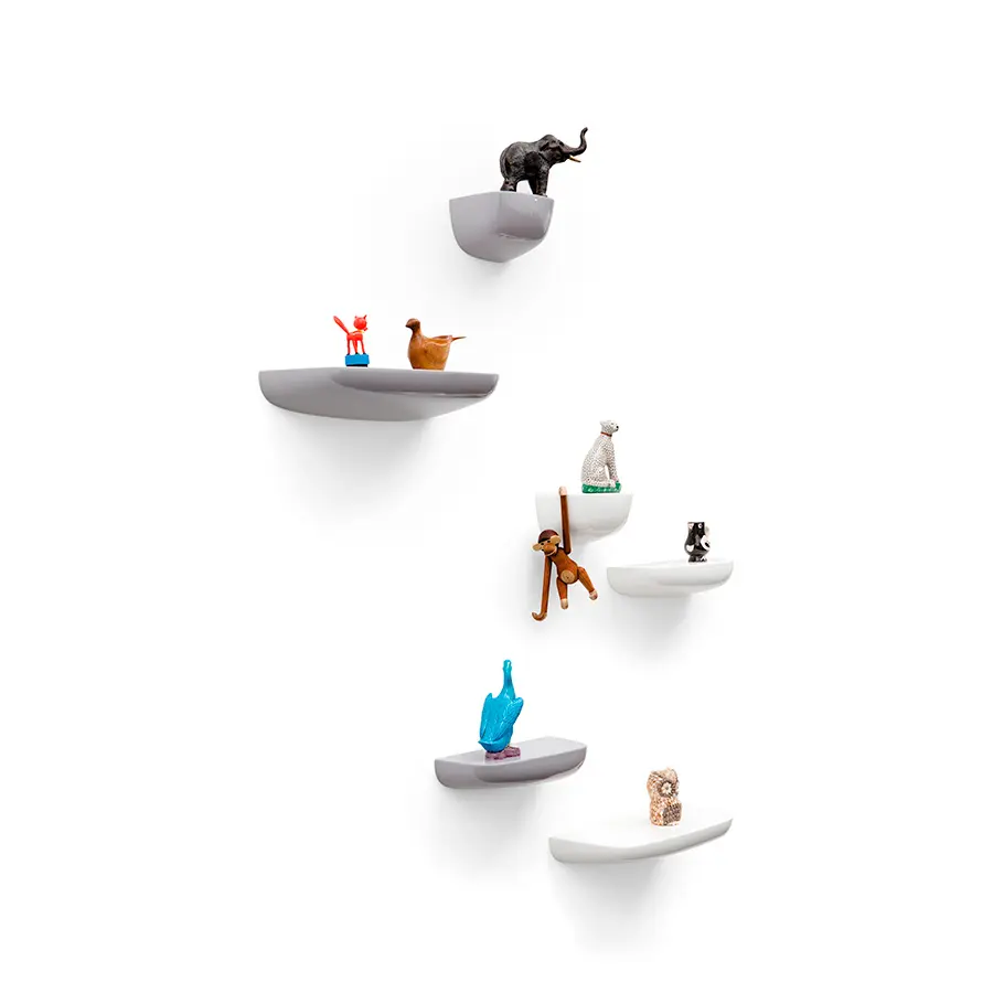 Los Corniches de Ronan y Erwan Bouroullec pueden servir como práctica repisa o como instalación mural decorativa. Por ejemplo pueden utilizarse como lugar donde dejar las llaves junto a la puerta, un espacio donde dejar a nuestro alcance todo lo que necesitamos en el baño o un pedestal para una pequeña colección de objetos. Corniches son de plástico de alta calidad y tienen distintas formas, tamaños y colores.
