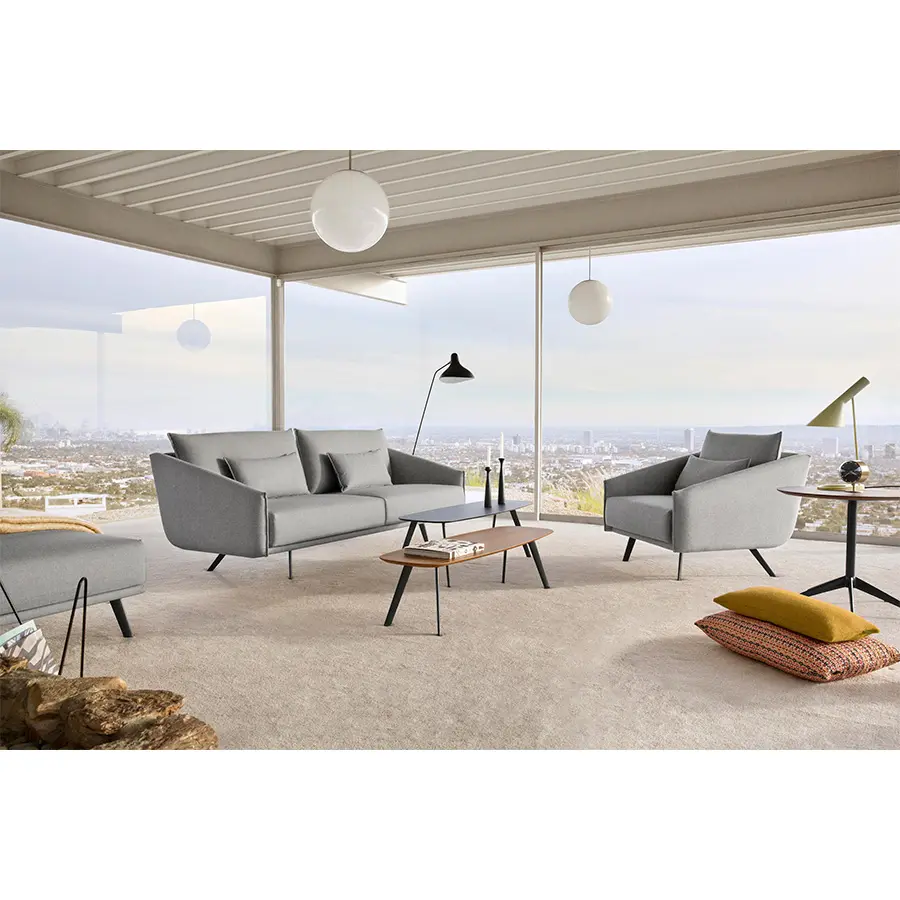 Cada asiento de Costura tiene dos cojines como respaldo, que además son volteables. El más grande es de foam y el más pequeño y blando está relleno de pluma natural. La chaise longue se puede cambiar de lado del sofá en cualquier momento. Desenfundable. Costura es un sofá contemporaneo, cuyo diseño está enraizado mientras mira adelante. Nos trae una estructura fina que no desperdicia espacio, ligeros respaldos en forma de cojín y el mejor comfort.