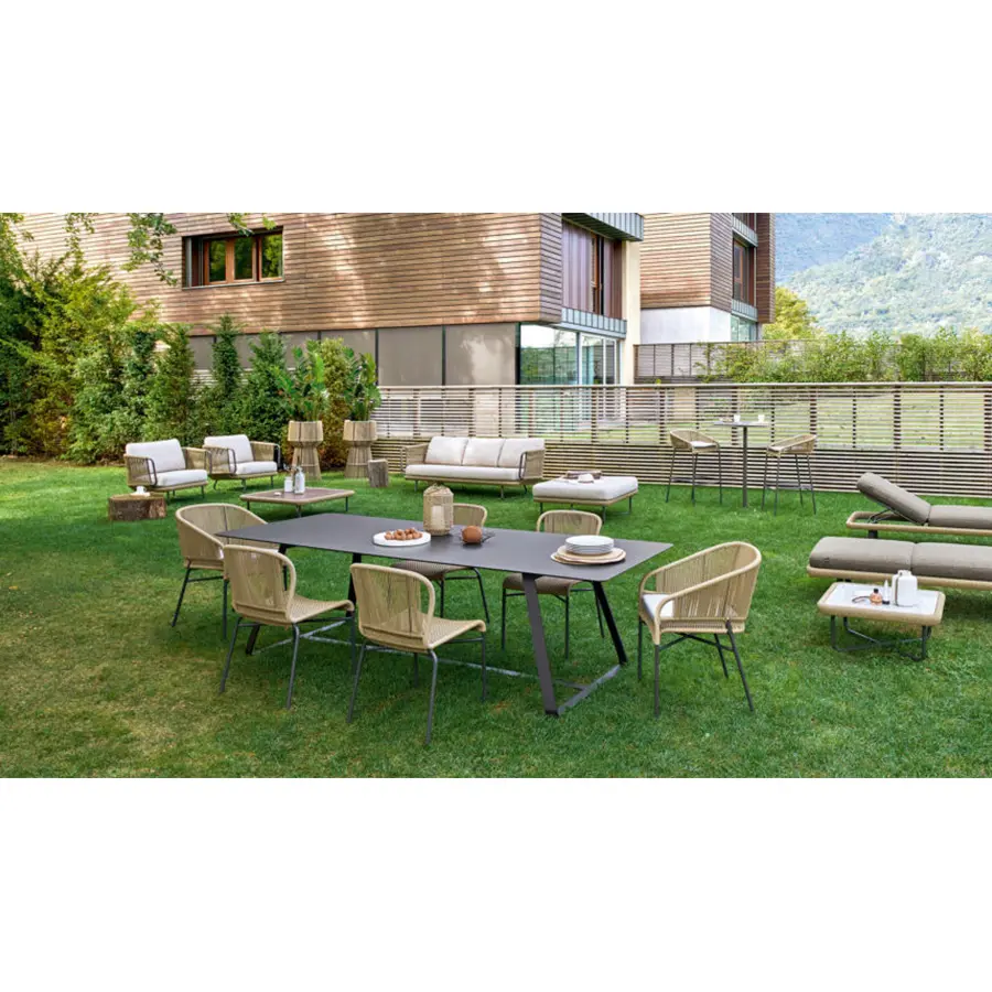 Sillón exterior ideal para amueblar el jardín o una veranda. El sillón Cricket es de aluminio pintado y cordón sintético tejido a mano disponible en color beige natural o marrón oscuro. Este sillón para exteriores es una pieza de diseño refinado, elegido por arquitectos y diseñadores internacionales para amueblar los espacios al aire libre de los mejores hoteles y restaurantes del mundo. El sillón de exterior Cricket es perfecto para el sector contract pero también para el privado. El cordón tejido a mano le da a este sillón de exterior un diseño original y elegante, mientras que la estructura de aluminio garantiza un asiento práctico y ligero.