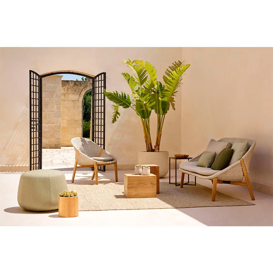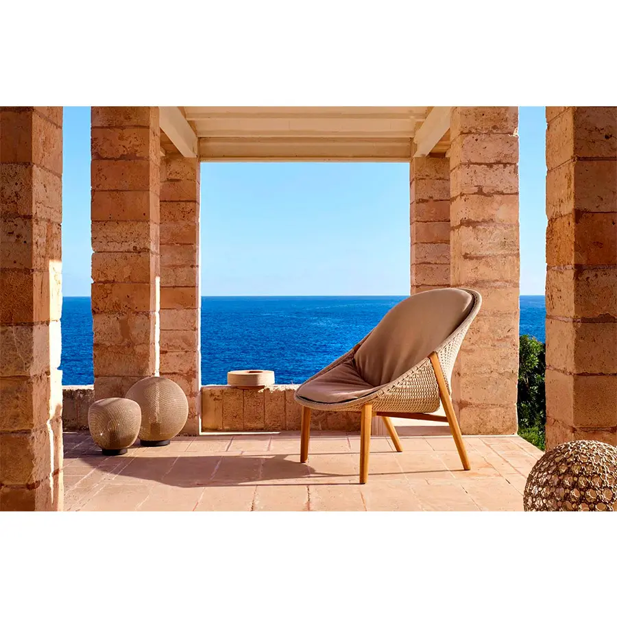 Esto requiere de una gran maestría, ya que, aunque las esquinas del tubo están dobladas a 90°, mantienen une forma redonda. El respaldo solo está unido a la estructura en dos puntos, por lo que parece estar flotando. El tejido con estructura abierta evoca la secular tradición del tejido.