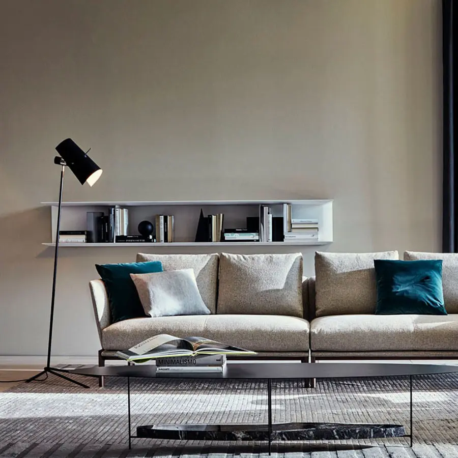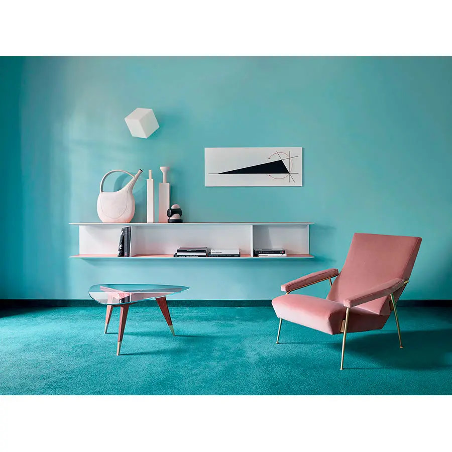La colección Molteni&C diseñada por Gio Ponti este año se enriquece con la librería colgada D.355.1. Un objeto que el gran arquitecto milanés rediseña en varias ocasiones en el transcurso de los años, reeditado en la versión para su casa de Via Dezza en Milán, acabado en olmo, pintado blanco a mano, 240 ó 195 cm de longitud, con los divisorios que recuerdan la librería presente en el catálogo Molteni&C desde 2013.