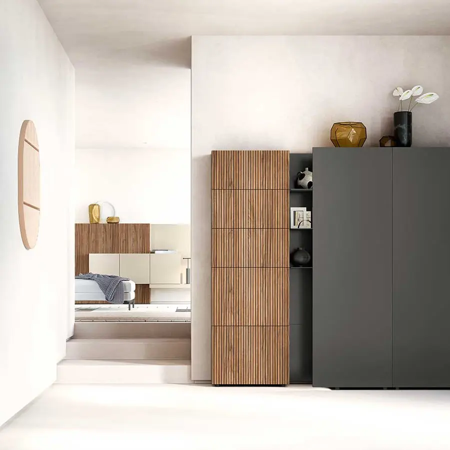 Day collection es un sistema versátil para todos los espacios del hogar que ofrece la máxima libertad de composición. Contenedores, estantes, paneles de pared, banquetas y cajoneras para crear módulos tradicionales o nuevas composiciones que juegan con los volúmenes y los vacíos. Los múltiples acabados también se adaptan a diversos gustos y necesidades.
