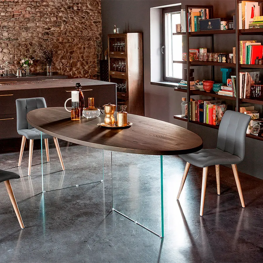 La mesa Daytona hecha de madera maciza destaca por su forma oval y su espesor de 3.5 cms. Para este tipo de fabricación, cada encimera es diferente y exclusiva. Podemos elegir entre más de 30 colores disponibles, desde colores naturales hasta los tonos más eclécticos, para darle la máxima creatividad y hacer una mesa única. Múltiples soluciones para personalizar aún más la mesa y satisfacer cualquier necesidad. Puedes elegir patas entre las variantes de madera que garantizan la continuidad con la parte superior, el hierro en todos sus acabados, para crear un contraste agradable o el vidrio para aligerar la estructura, consiguiendo que casi desaparezca, con el objetivo de embellecer aún más la nobleza de la encimera de madera maciza.