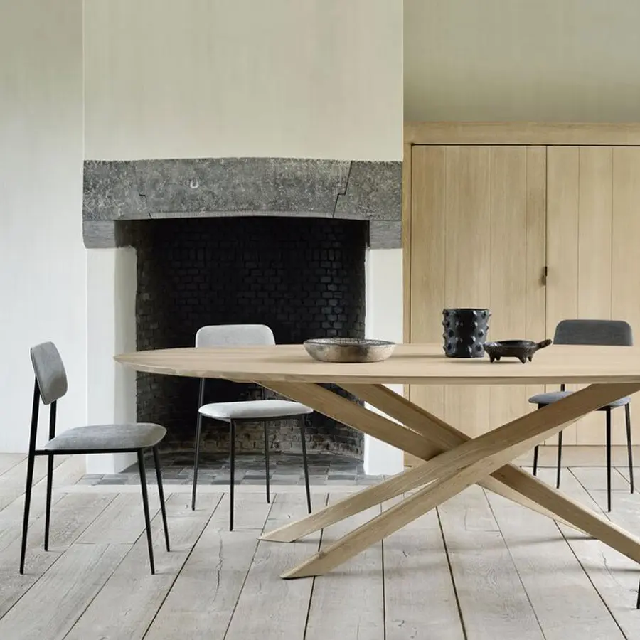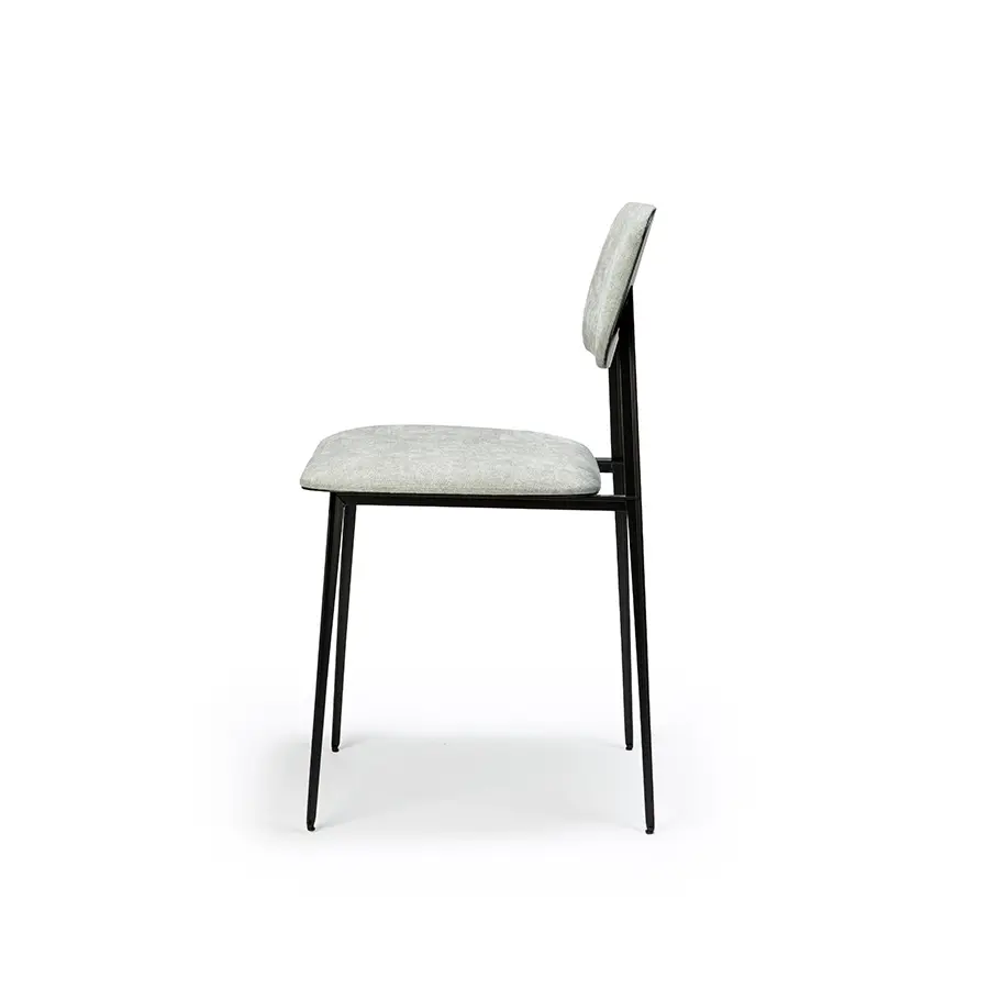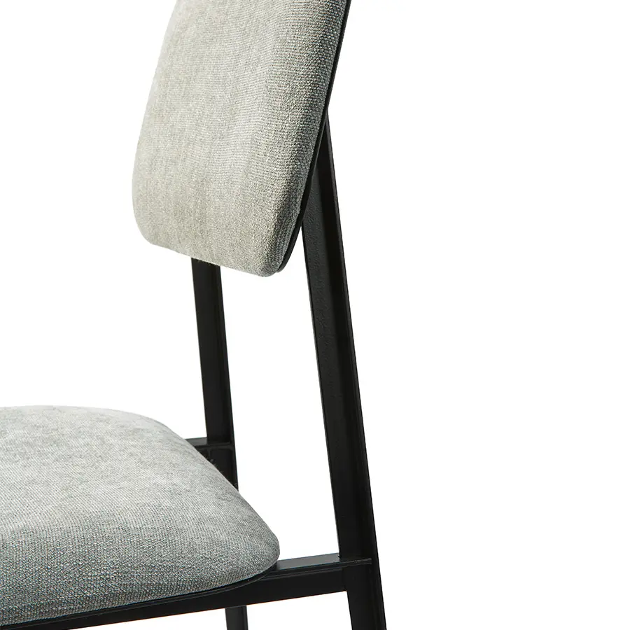 Una silla con estructura de metal ligera y estilizada con un diseño minimalista. El equilibrio entre solidez y suavidad, genera una silla de comedor elegante y cómoda que se adapta a cualquier interior.