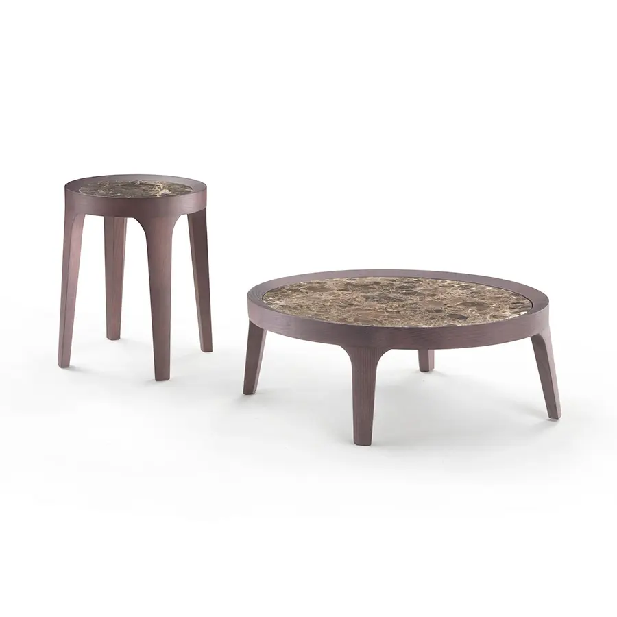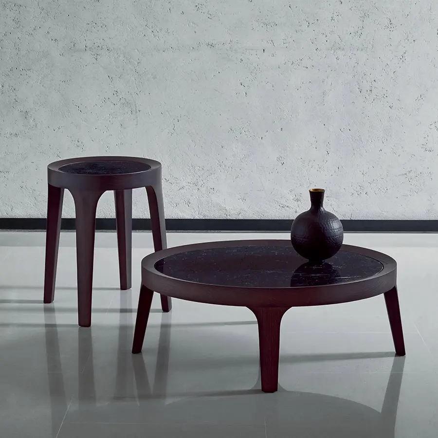 Las mesas de centro Eaton descansan sobre una elegante base de fresno macizo barnizado en los tonos del ébano, wengué, marrón o rojo. Los tableros redondos u ovalados están hechos con preciosas variedades de mármol insertados en el bastidor de madera maciza, o también están disponibles en madera, en el mismo acabado que la estructura. Las mesas de centro Eaton son accesorios caracterizados por su gran versatilidad y pueden combinarse fácilmente con todos los sillones y sofás de la colección Flexform Mood.