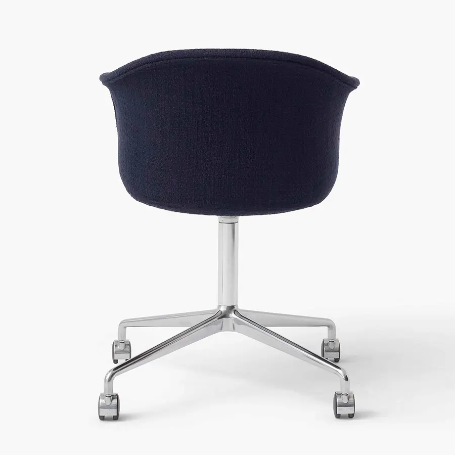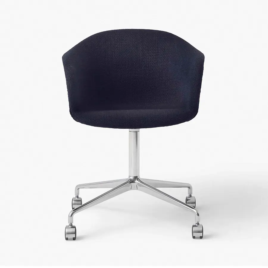 Esta silla se define por una carcasa de asiento suave y acogedora, unida a una base giratoria de aluminio pulido o con recubrimiento en epoxy. Gracias a su cómodo asiento, es perfecta para sentarse durante largos períodos de tiempo para cenar o trabajar. Disponible en distintos colores.