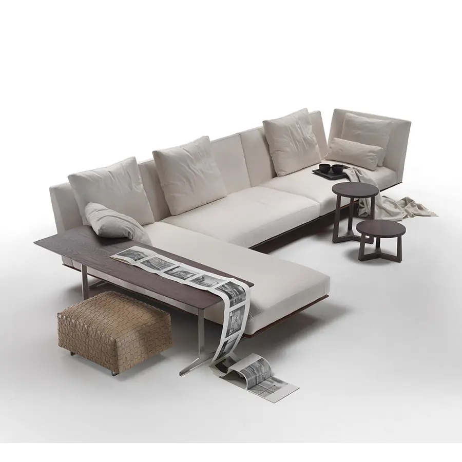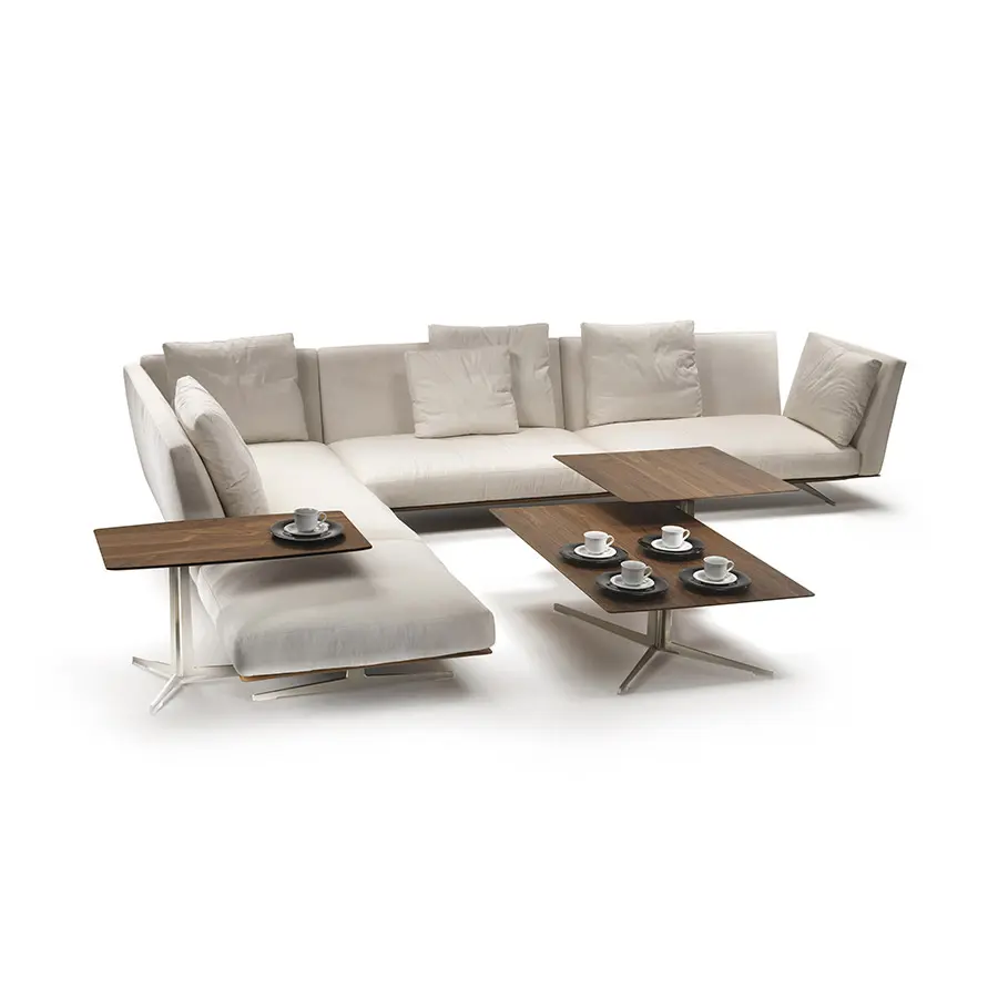 El carácter del producto se resume brillantemente en el nombre: el sofá Evergreen se caracteriza por un diseño sobrio, más allá del tiempo y las modas. La ligera y refinada estética que lo caracteriza se expresa en el diseño de la base en metal fundido a presión que mantiene el sofá elevado del suelo. Los respaldos y los reposabrazos tienen espesores contenidos y se abren hacia afuera, acentuando el aspecto etéreo de este sofá. Los cojines del asiento descansan sobre una base de metal recubierta de cuero, un detalle que agrega valor a un sofá extremadamente flexible.