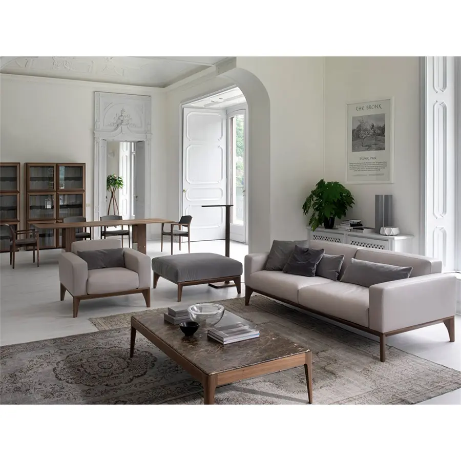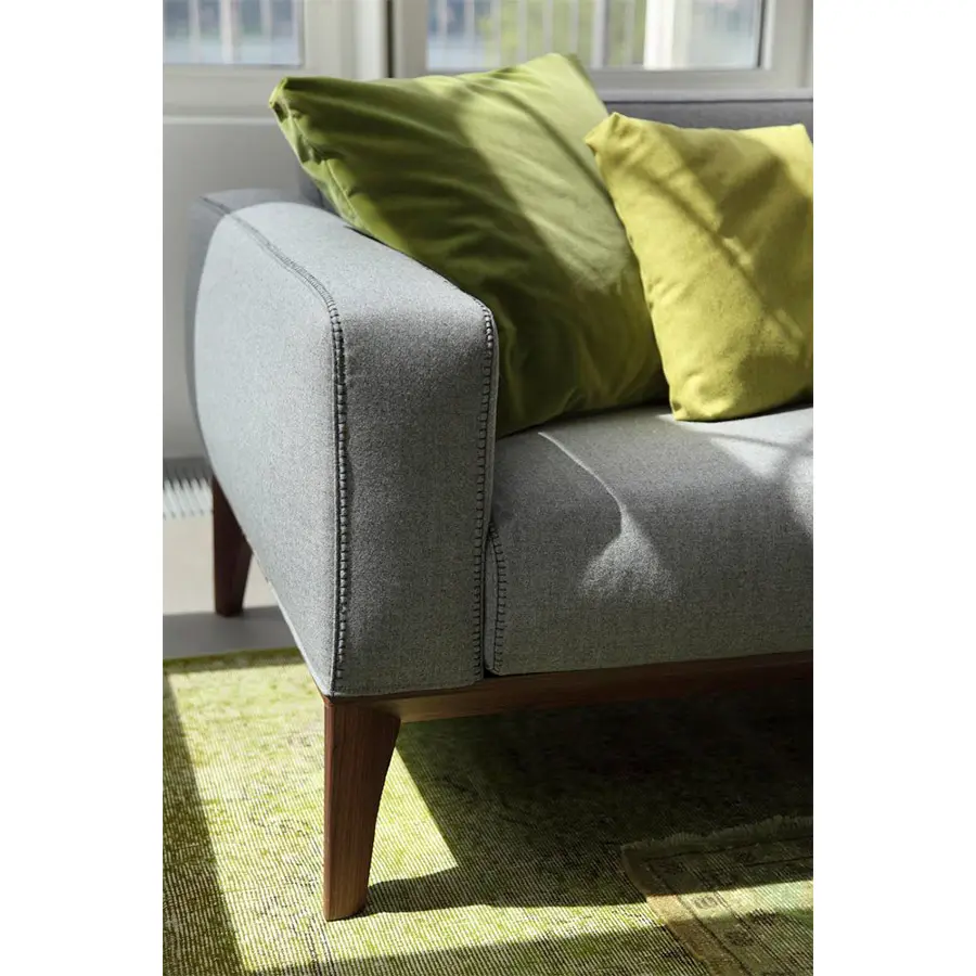 Fellow es un sofá de líneas rectas y elegantes, ligero a la vista para encajar a la perfección en los ambientes más sofisticados y exigentes. Las costuras perfectamente cuidadas y elaboradas resaltan la belleza de este sofá. Fabricado en nogal canaletta macizo y revestimiento en las telas o pieles de la colección.Disponible en dos medidas 180x95x76 – 220x95x76.