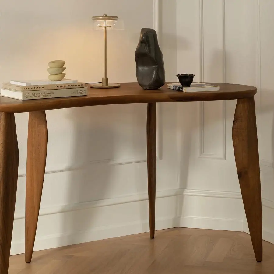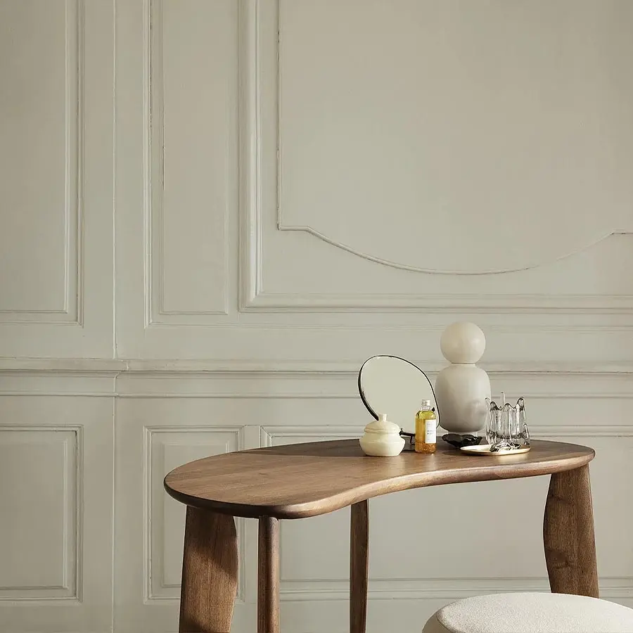 Con su forma novedosa y expresión orgánica, el escritorio Feve de ferm LIVING recibe su nombre de la palabra francesa «Fève», que significa frijol. Bellamente elaborado en nogal europeo certificado por el FSC, el escritorio presenta patas talladas en formas elípticas alargadas que realzan su silueta refinada y elegante.