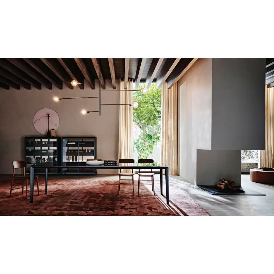 FILIGREE es una familia de mesas fijas y extensibles. Se caracteriza por su estructura en aluminio fundido a presión con formas sinuosas y su fino tablero de apoyo. Su tecnología le permite lograr el extensible telescópico, un tablero entero sin corte, máximo aprovechamiento gracias a sus patas externas y sobre todo una estructura para contener el mecanismo de 38 mm de espesor interno.
