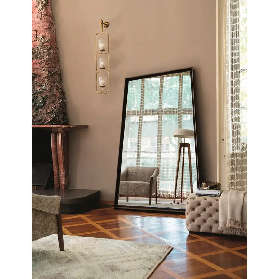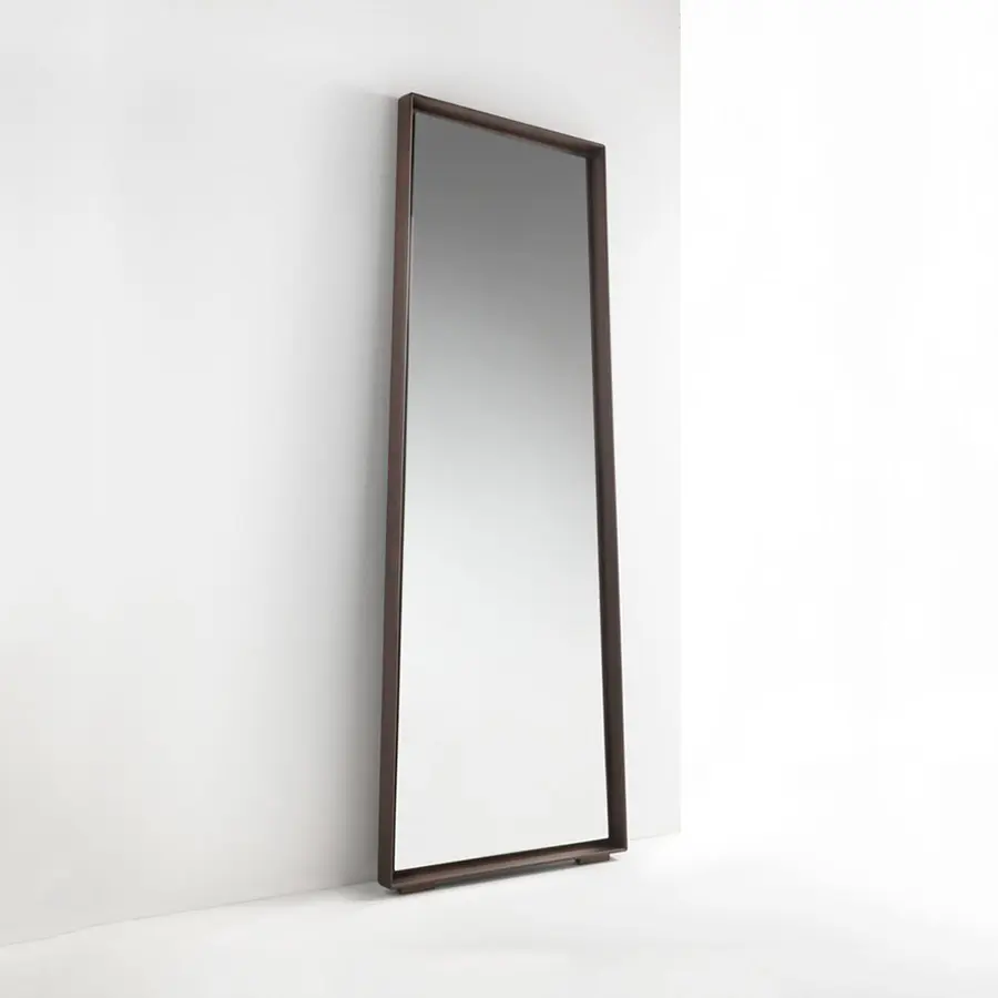 Espejo trapezoidal para colgar o apoyar a la pared con estructura en fresno macizo.