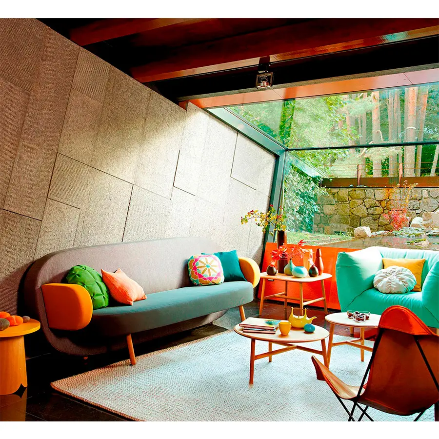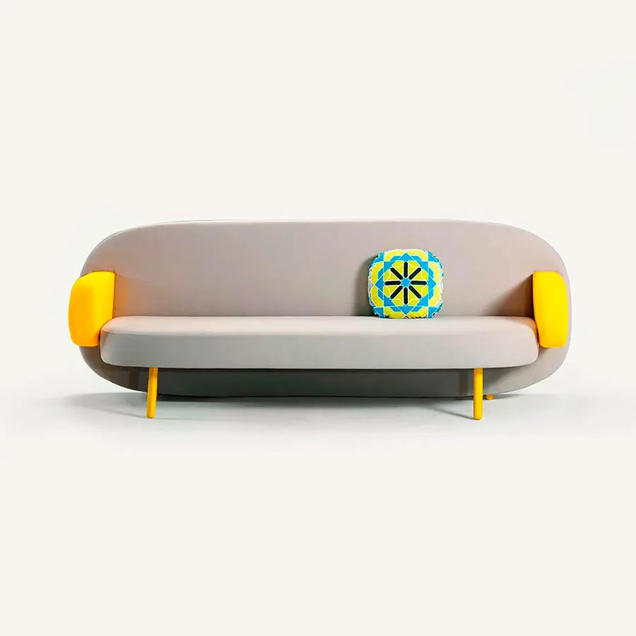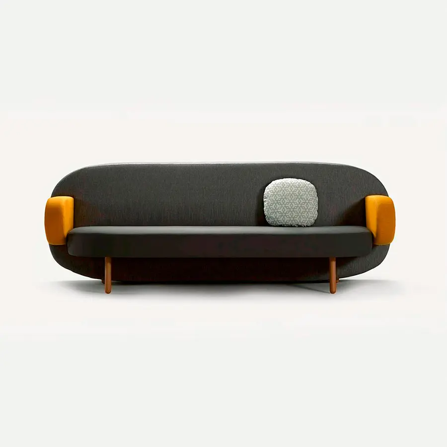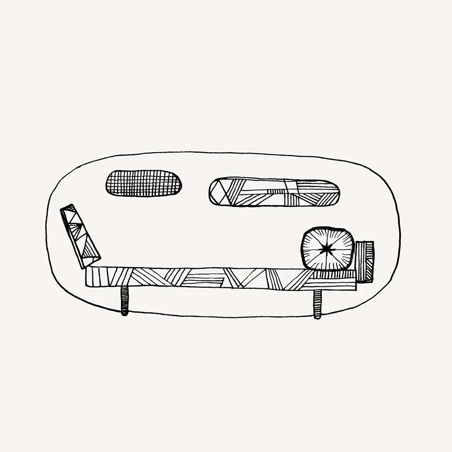 Float está disponible en tres tamaños: dos sofás con respaldo bajo y un sofá con respaldo alto. Este último tiene distintas configuraciones; además de los brazos rectos, podemos seleccionar un brazo inclinado que sirve para recostarnos sobre él a modo de diván. Asimismo, el respaldo alto, como si de una pared se tratara, permite incorporar dos colgadores. Para cojines y reposacabezas Karim también ha diseñado una serie de estampados denominados Cairo.