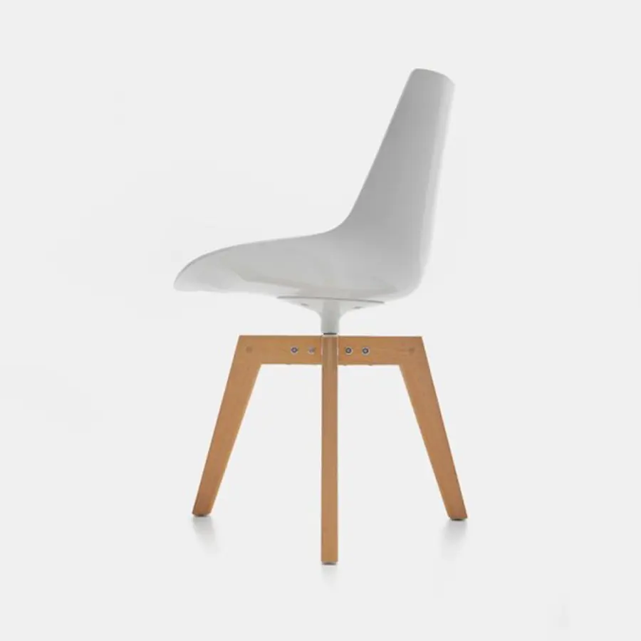 Flow, ícono de la colección MDF Italia, se renueva y, gracias a la base de madera Iroko, también es adecuado para espacios al aire libre. Flow Chair Iroko también satisface las diversas necesidades de diseño para contratos, hospitalidad y negocios de restaurantes. Concha pigmentada en masa (brillo exterior).