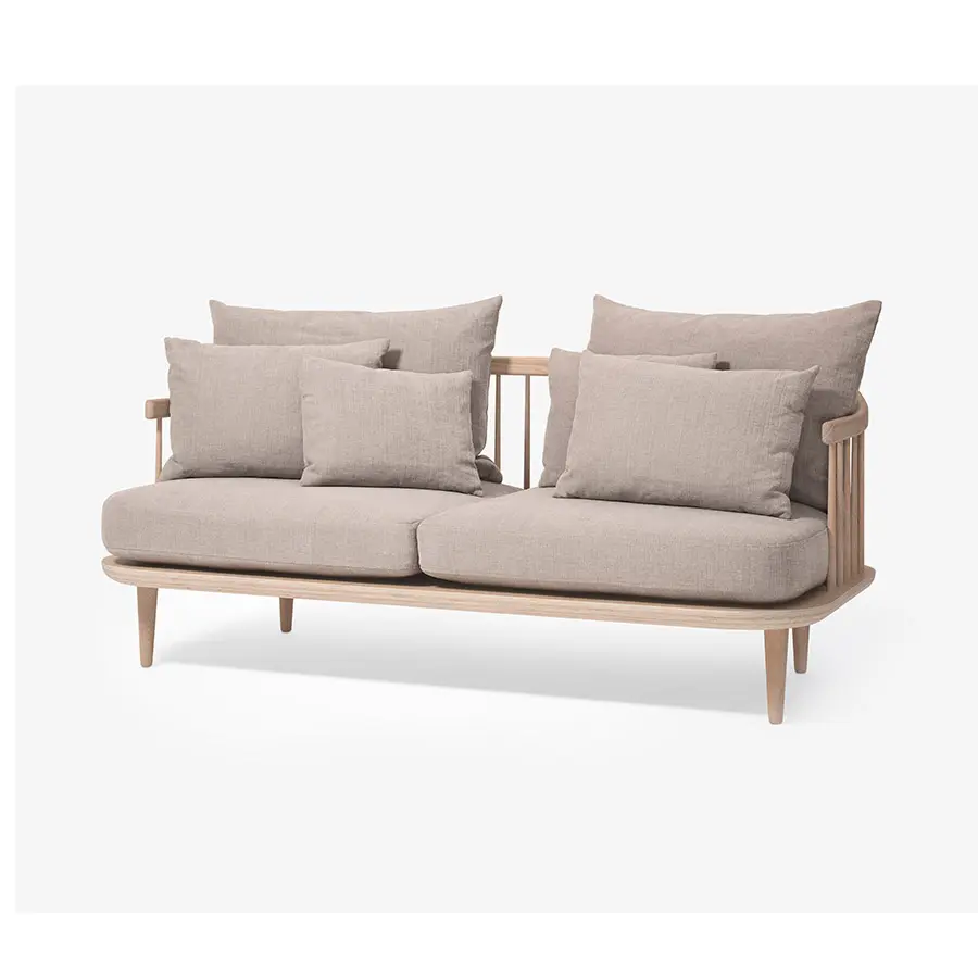 A diferencia de muchas de las butacas que forman parte del diseño escandinavo, FLY no impone ninguna postura particular. El amplio asiento está pensado para el confort, con cojines sueltos en el respaldo que se pueden colocar a gusto de cada uno. Pero FLY no deja escapar la estética ni la tradición en otros aspectos. La estructura del sillón, con respaldo de listones, está hecho de roble macizo encerado o teñido. Gracias precisamente a este material y su tratamiento, la butaca envejece con verdadera gracia, y se volverá más hermosa con el tiempo. También disponible en versión sofá y chaise-loungue.