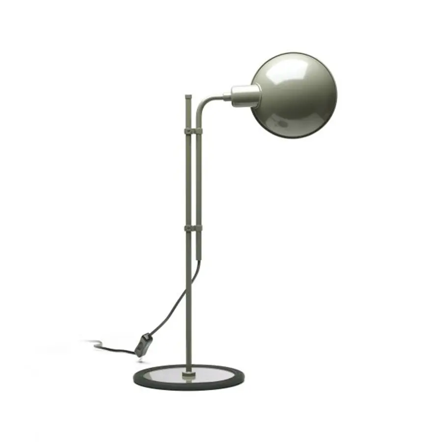 La pantalla ofrece una rotación de 360º para dirigir el haz de luz hacia donde convenga. La Funiculí sobremesa tiene una goma que recubre el contorno de la base para evitar el contacto frío del metal con la mesa y añadir estabilidad a la lámpara. Está disponible en negro, blanco, rojo, beige, gris musgo y un nuevo color, azul.