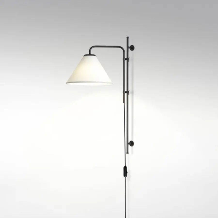 El tejido de su pantalla desbloquea la luz y permite que se filtre, aportando más iluminación al espacio. La esencia de ambas luminarias sigue siendo la simplicidad, pero el nuevo diseño es más aparente y clásico, más sofisticado. Esta nueva colección está disponible en las categorías de pie, sobremesa y aplique, en dos colores beige o blanco, y con la estructura siempre negra. Fuste y anclaje en hierro lacado negro. Pantalla de poliéster blanco o arena formada por dos láminas de PVC y PET. Acabado Negro-Blanco y Negro-Arena