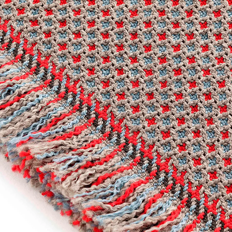 La colección Garden Layers, elaborada con materiales y tejidos especiales para un uso en ambientes exteriores, está compuesta por colchonetas, rulos, cojines, camas y mesas auxiliares. Fabricada en telares mecánicos con agradables fibras de polipropileno al tacto, con distintos diseños y tonos de colores. Por su corte neutro, encaja con cualquier otro tejido de Garden Layers –aunque todos los modelos de esta colección están diseñados para que armonicen entre sí. La idea es jugar a combinar tejidos diferentes a modo de capas (de ahí, el nombre de la colección). En particular, este modelo encaja especialmente bien con las colchonetas pequeñas Checks, los rulos grandes Diagonal en un tono claro, los cojines grandes Diagonal en tejidos oscuros, las Indian beds dobles Gofre y las mesitas auxiliares de menor tamaño.