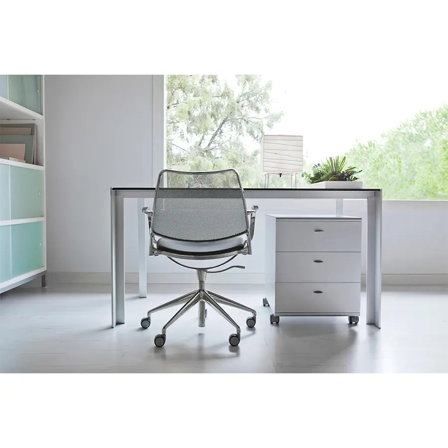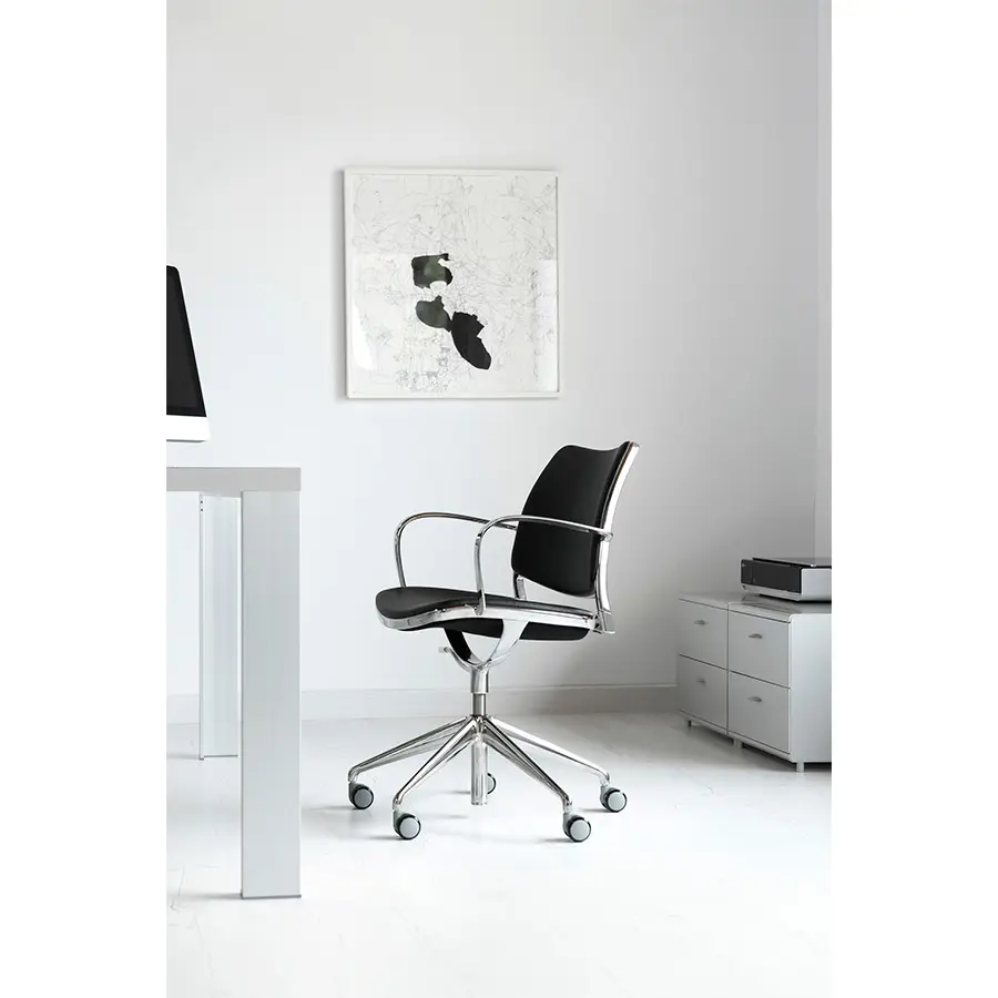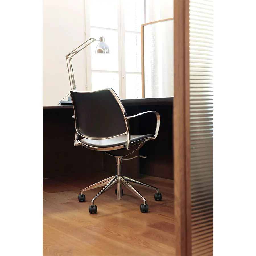 Evolución de la silla Gas de Jesús Gasca, para crear una silla de trabajo cómoda y ligera que se integra perfectamente en espacios más cálidos y cuidados.