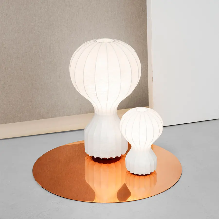 La lámpara de mesa Gatto de Flos proporciona una luz difusa y suave. Se puede utilizar como lámpara de mesa, lámpara de noche o lámpara de escritorio. Gatto está hecho de una estructura interna de acero con recubrimiento de polvo blanco que se rocía con una resina única ‘cocoon’ que crea el difusor. El Gatto está disponible en dos tamaños.