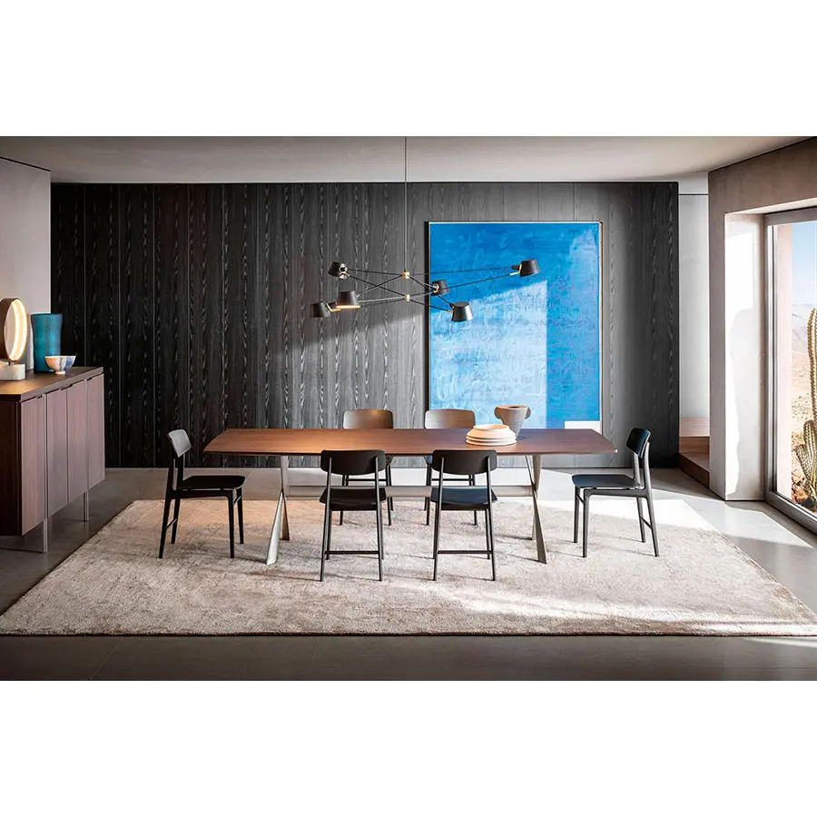 Base aluminio acabado zinc, cromo negro – Top en madera y mármol de la gama de acabados de Molteni.