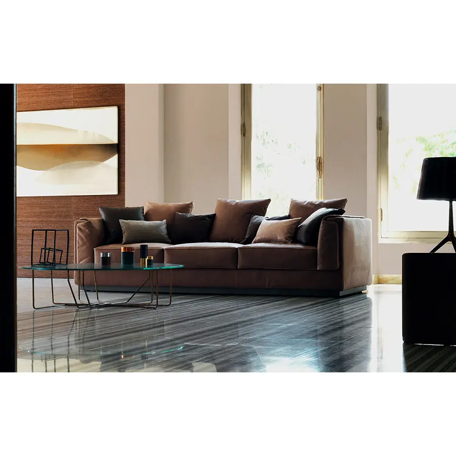 El elemento característico es el borde de los cojines de asiento y en el extremo de la segunda funda, a elegir en las variantes tono-sobre-tono o bien en contraste. El revestimiento de la estructura en tejido, piel o Ecopelle es desenfundable, la segunda cobertura se puede quitar. Un confort de calidad superior está garantizado por la posibilidad de elegir el asiento en dos versiones: más rigido o más blando.