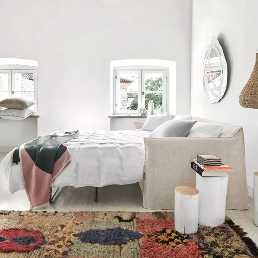 La familia de sofás-cama Ghost combina funcionalidad, confort y estética. Disponibles en la versión sillón-cama y sofá-cama en variados tamaños, los sofás transformables Ghost se desarrollan alrededor de un ligero bastidor de volúmenes esenciales. La característica principal de los sofás-cama Ghost es la funda extraíble, una funda de gran tamaño cuyo perfil está destacado por las costuras a la vista, que permite desvestir y volver a vestir a los productos en un instante. Se trata de un diseño textil que cambia fácilmente el aspecto, permitiendo pasar de un look elegante a uno informal con facilidad y rápidamente.