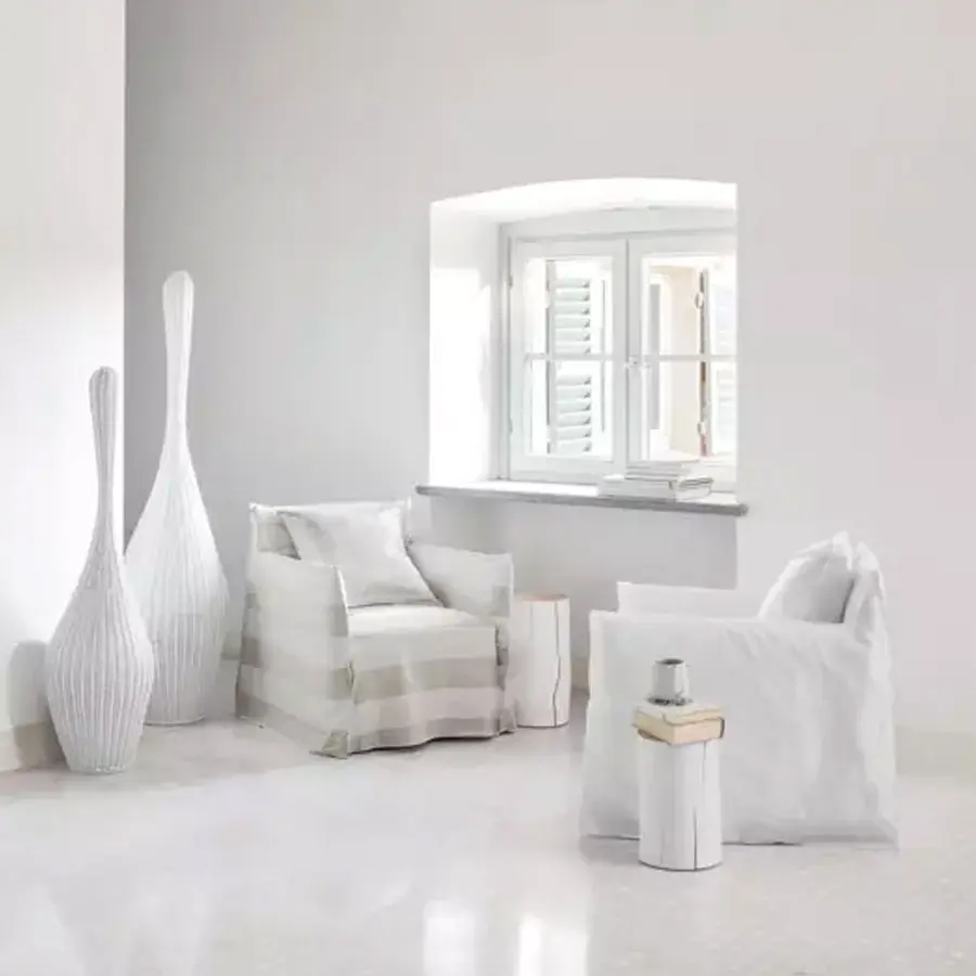 Los sillones de la familia Ghost tienen respaldos con alturas diferentes y asientos de variados tamaños, tienen una estructura minimalista y sutil, revestida de poliuretano expandido y cojines sueltos de mezcla de plumas. La característica principal de los sillones Ghost es la funda extraíble, una funda de gran tamaño cuyo perfil está destacado por las costuras a la vista, que permite desvestir y volver a vestir a los productos en un instante. Se trata de un diseño textil que cambia fácilmente el aspecto, permitiendo pasar de un look elegante a uno informal con facilidad y rápidamente.