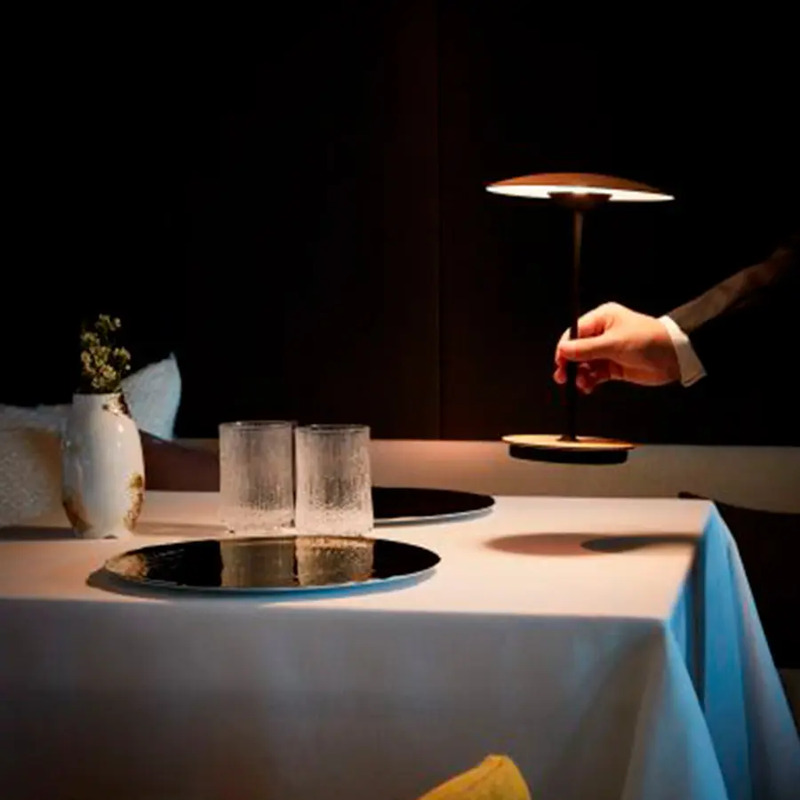 La madera es una gran aliada de la iluminación más intimista, un material complicado de moldear que la colección Ginger resuelve con nitidez. La combinación de láminas de madera, papel y resinas prensados a alta presión consigue una luminaria de aspecto casi plano, sobrio, que ilumina los espacios con luz indirecta desde una presencia leve.