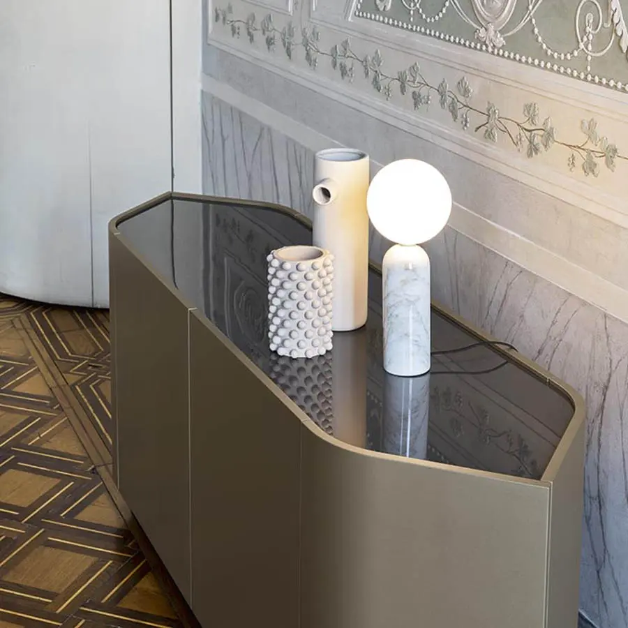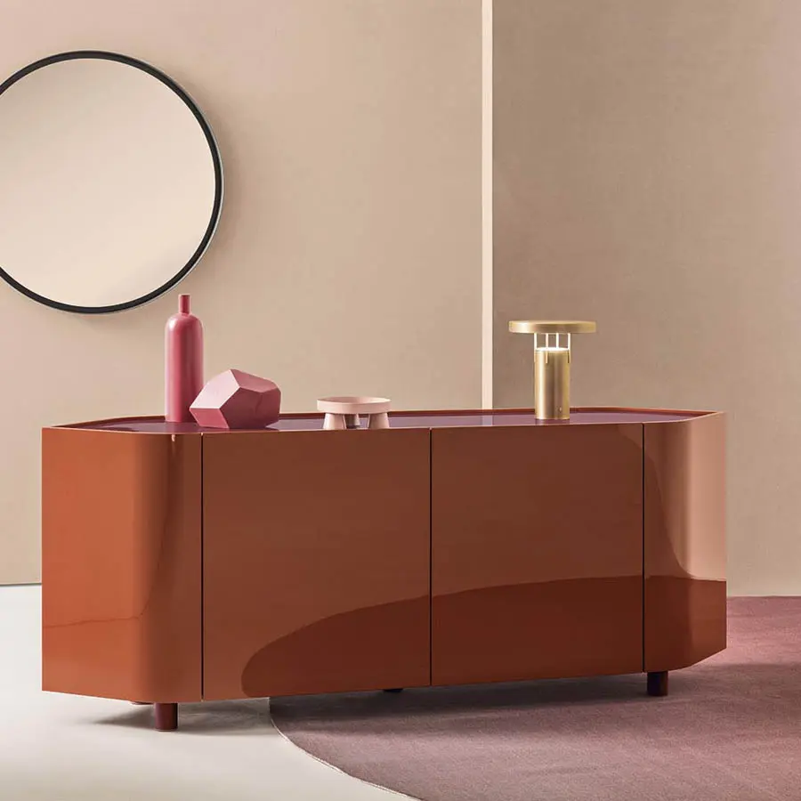 El aparador Gioberg es un aparador de 4 puertas.‎ Se pueden convinar dos tonos lacados distinguiendo el color en los frentes y las encimeras/interiores.‎ El mueble está equipado con bisagras ocultas de cierre progresivo.‎ El mueble de almacenaje Gioberg es muy personalizable: hay más de cincuenta materiales entre los que elegir para fabricar su aparador.‎ La posibilidad de combinar dos acabados diferentes para la encimera y los frentes amplía las posibilidades del aparador Gioberg, convirtiéndolo en el aparador perfecto para cualquier salón o comedor.‎