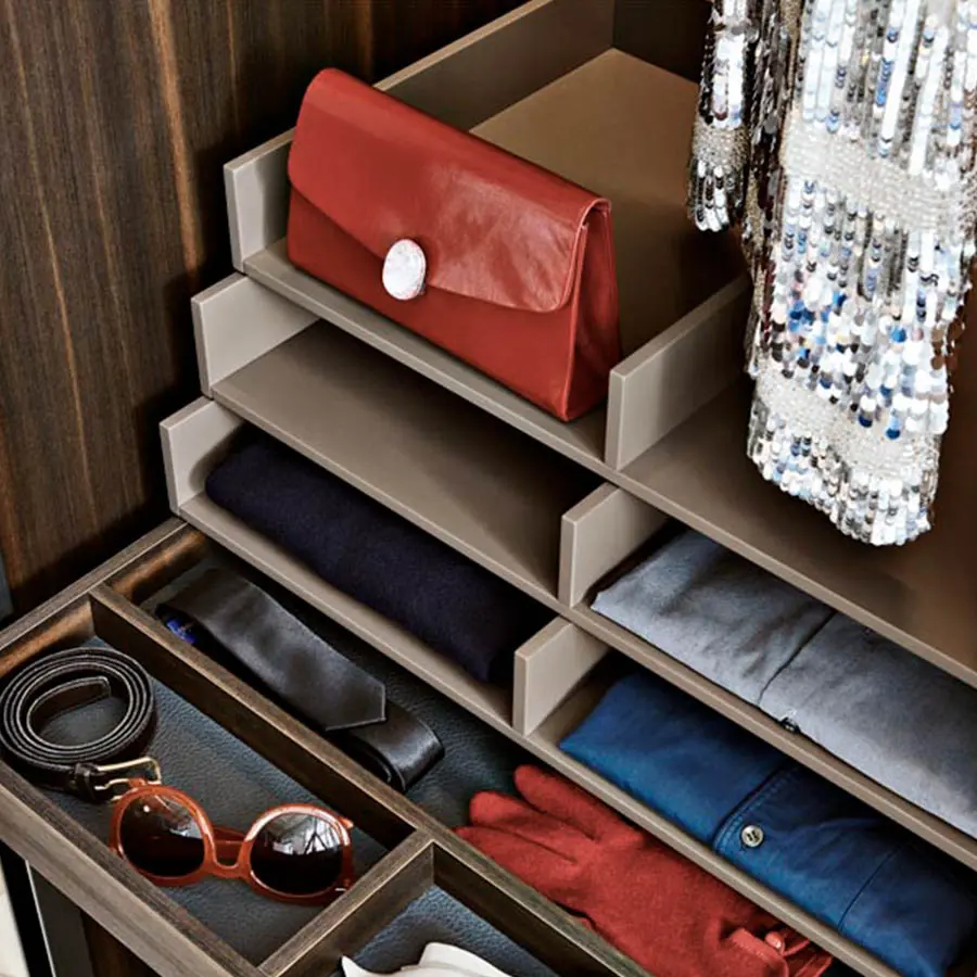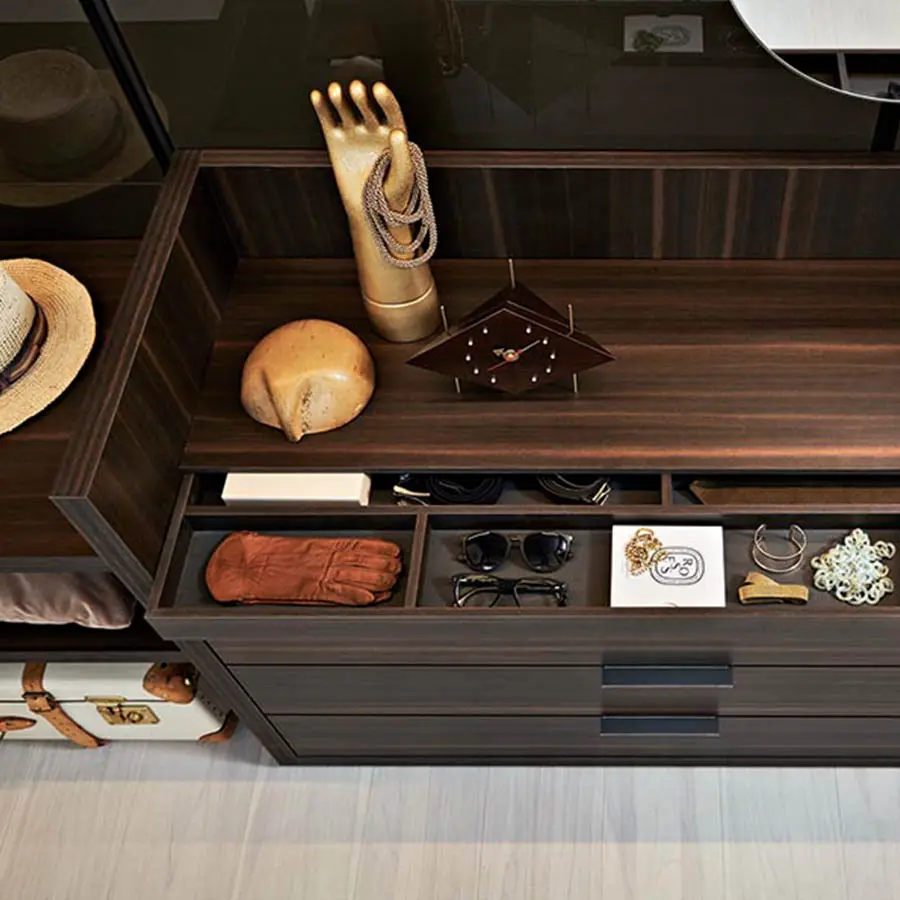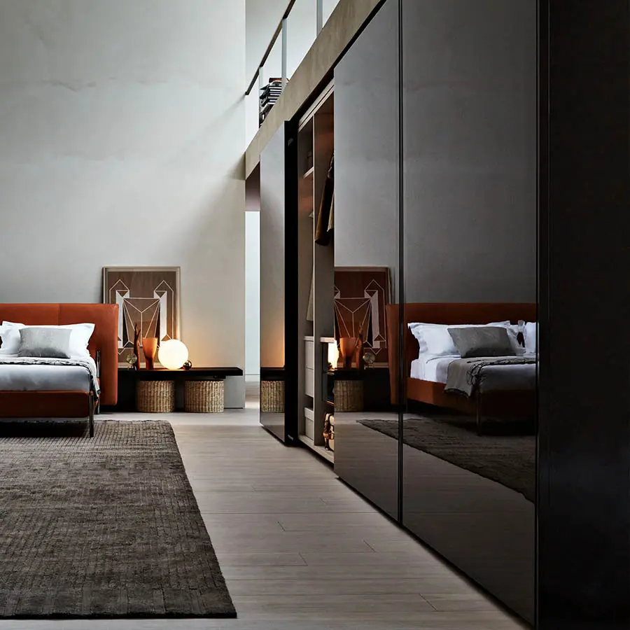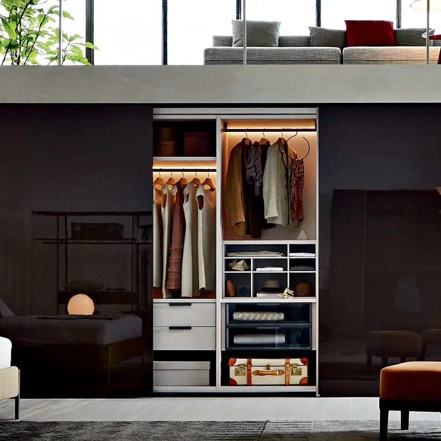 El concepto básico de la colección Gliss Master resulta evidente en los detalles: bisagras innovadoras empotradas sin mecanismos a la vista, nuevos equipos internos (zapateros, porta-camisas, porta-corbatas) y un sistema de deslizamiento que resulta muy fluido por la presencia de innovadores amortiguadores magnéticos son tan sólo algunas de las “joyas” de la colección, amplia y diversa.