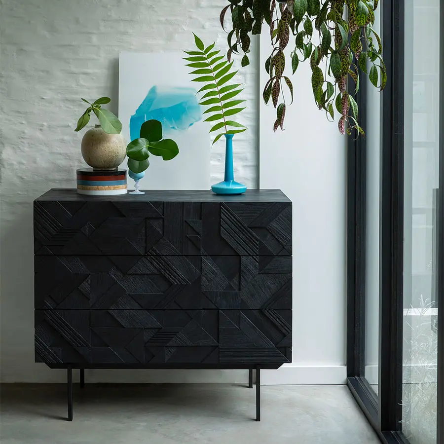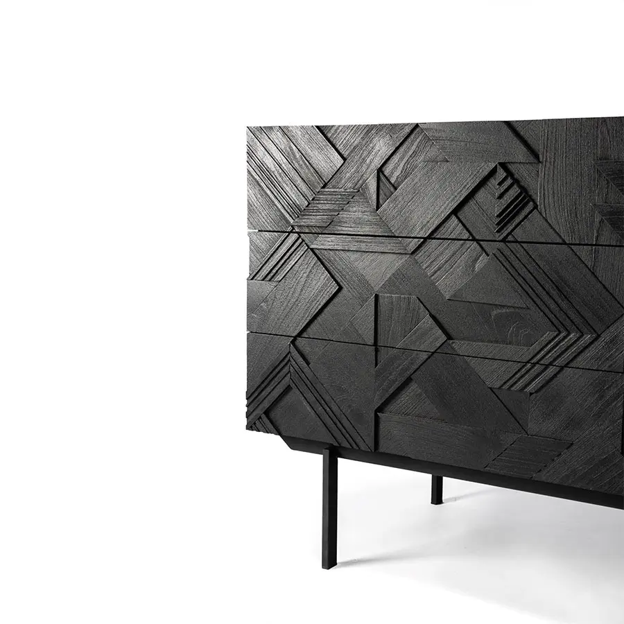 En su búsqueda para agregar movimiento a la superficie, el diseñador Alain van Havre comenzó a superponer y combinar formas triangulares. Antes de darse cuenta, había creado una composición visualmente atractiva de teca y nació la colección Graphic. Mediante el uso de múltiples capas, se crea una sensación de profundidad y dinamismo en los frentes. Se agregan movimiento y calidez al perfeccionar aún más los atributos naturales de la madera.