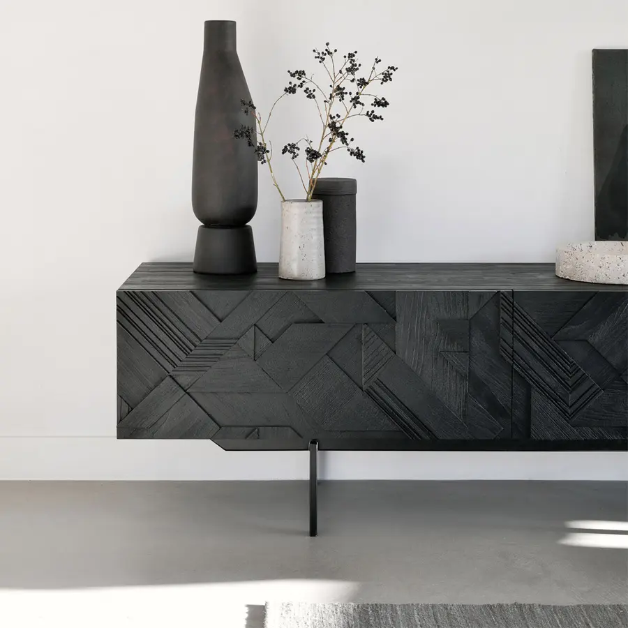 En su búsqueda para agregar movimiento a la superficie, el diseñador Alain van Havre comenzó a superponer y combinar formas triangulares. Antes de darse cuenta, había creado una composición visualmente atractiva de teca y nació la colección Graphic. Mediante el uso de múltiples capas, se crea una sensación de profundidad y dinamismo en los frentes. Se agregan movimiento y calidez al perfeccionar aún más los atributos naturales de la madera.