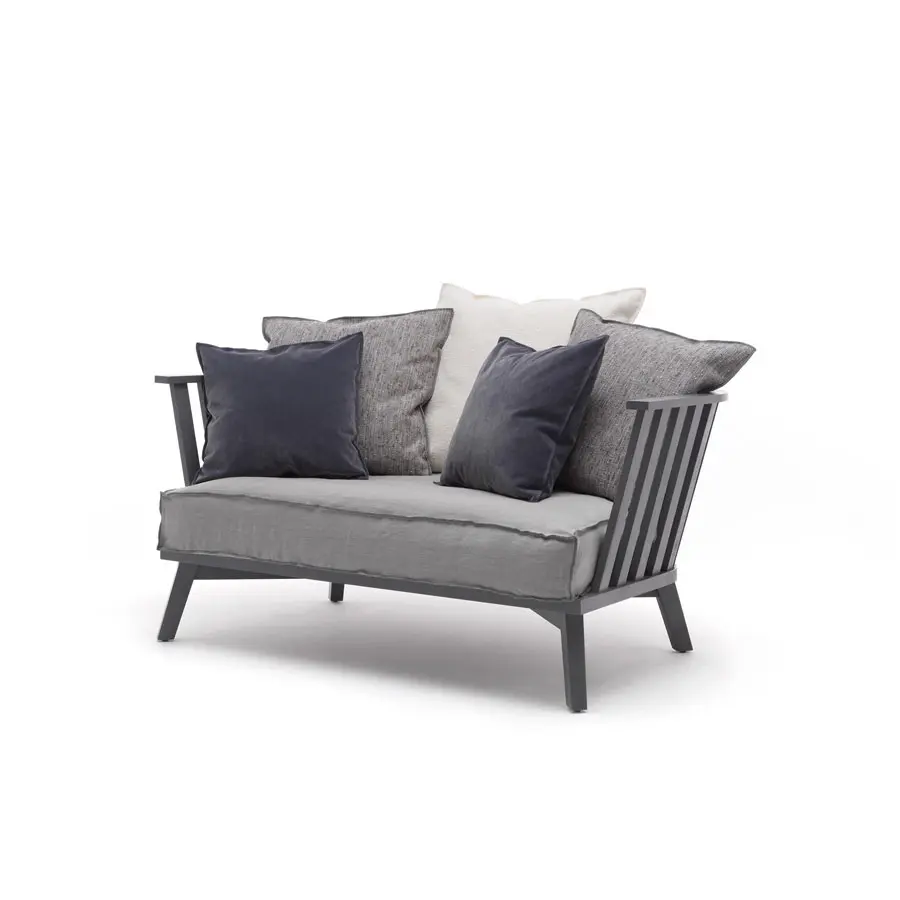 El sofá GRAY 04/05 se caracteriza por líneas sinuosas que evocan el estilo clásico nórdico. Al asiento amplio y profundo se combina un respaldo envolvente, caracterizado por listones de madera. Una elaboración que subraya la maestría artesanal de Gervasoni, creando un juego de llenos y vacíos. Se distingue por el agradable contraste entre la esencialidad de la estructura, de nogal o roble, y la suavidad de los cojines sueltos para un marcado confort.