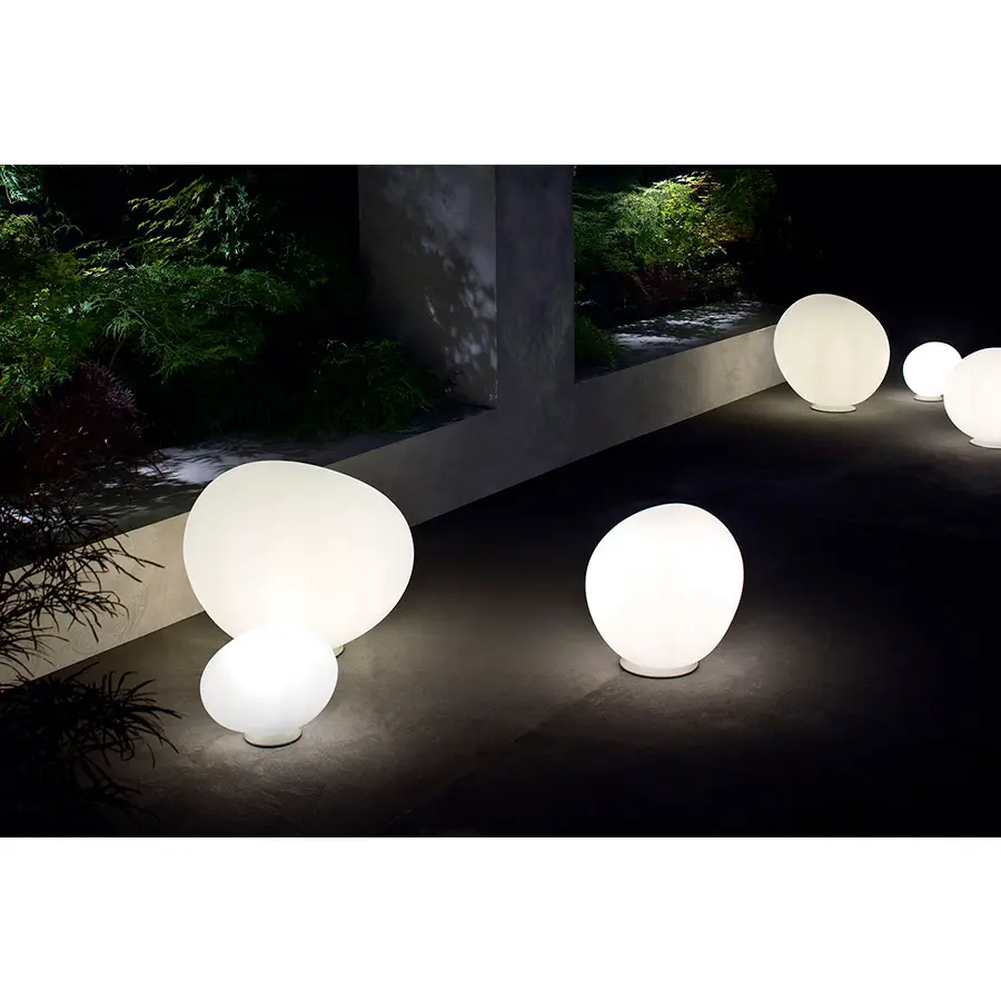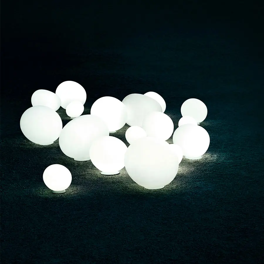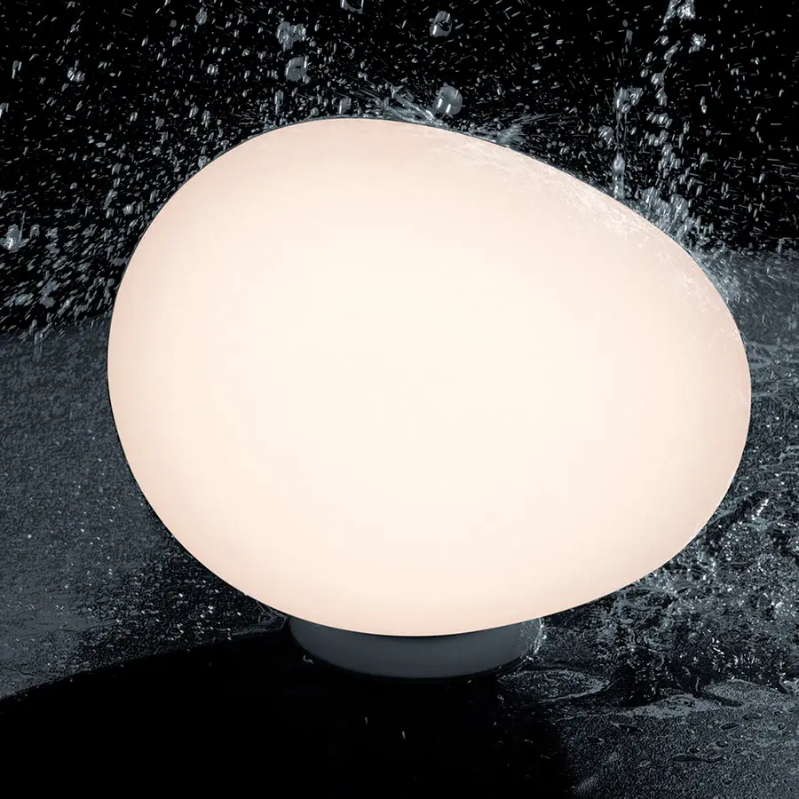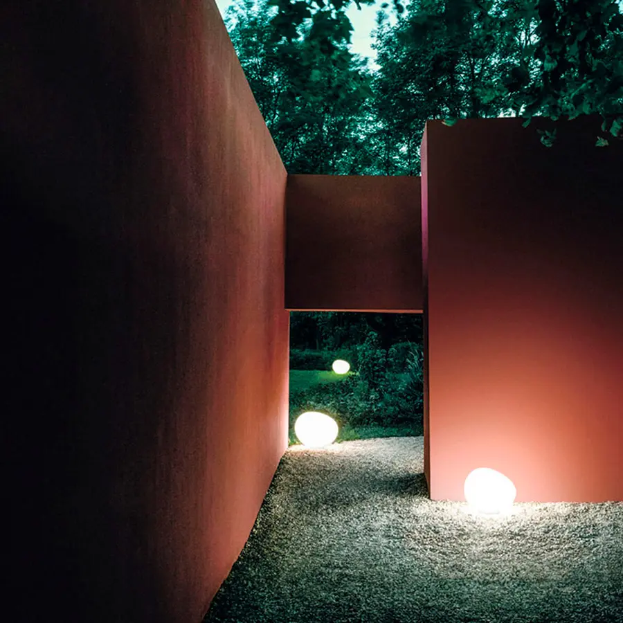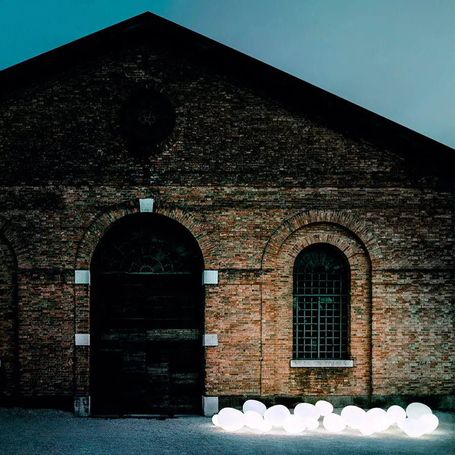Fruto de una inspiración natural y una profunda investigación, la forma de Gregg recuerda un gran cuenco alisado por el agua, o un huevo de un animal mitológico, símbolo de creación y regeneración. Realizada en polietileno, material ligero pero resistente a los golpes y a los agentes atmosféricos, Outdoor Gregg se encuentra disponible en las versiones de soporte y de suspensión, en tres tamaños: medio, grande y extragrande, para integrarse en cualquier situación y para crear composiciones libres, jugando entre tamaños y alturas distintas. Múltiples las posibilidades, doble la emoción: de día con una forma orgánica y pura, de noche con una cálida luminosidad. Outdoor Gregg, decoración e iluminación al mismo tiempo, se presta a caracterizar diversas situaciones: una terraza cubierta, un pabellón en el jardín, un patio, así como un ambiente para vivir al aire libre, expresando un estilo de vida que busca una nueva y refinada relación entre el diseño, la naturaleza y la arquitectura.