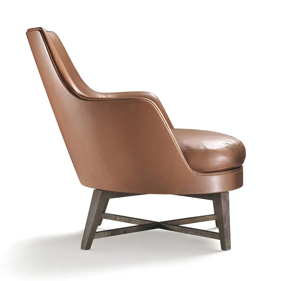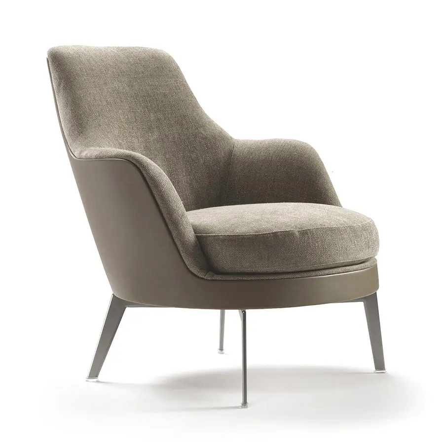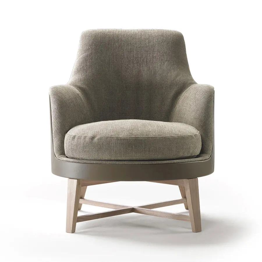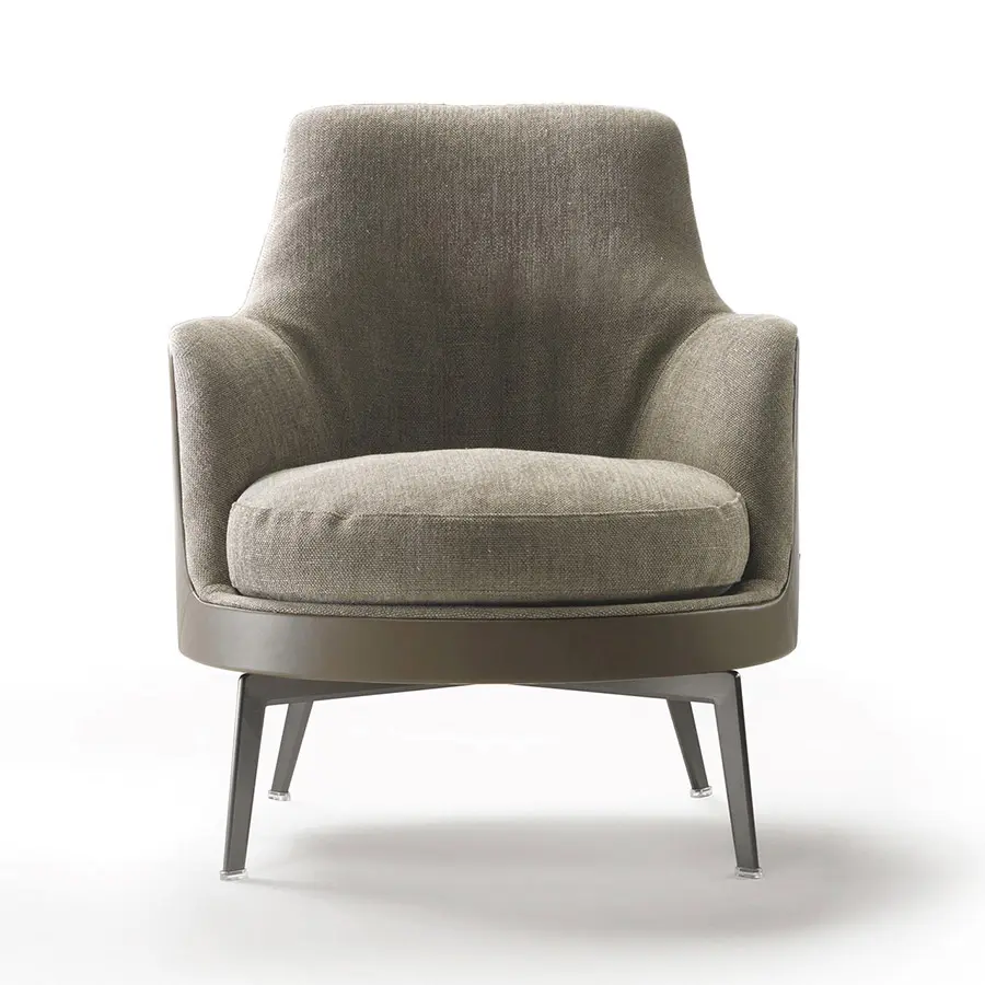 Eficaz síntesis de refinada elegancia y calidad, el sillón Guscio presenta líneas envolventes y una confección impecable, características que acentúan su inclinación natural a integrarse armoniosamente tanto en áreas residenciales como hosteleras, tales como salas lounge, despachos directivos y boutiques. La estructura consiste en una carcasa en espuma de poliuretano estructural, mientras que el cojín del asiento es de pluma con una inserción de material no deformable. La versión Guscio Soft proporciona un mayor relleno para el respaldo con una capa adicional de dacrón y memory foam, para asegurar un alto nivel de confort. El lenguaje estético refinado que caracteriza al sillón Guscio también se expresa en el diseño de la base, que se propone en las variantes de madera maciza –nogal americano o fresno en varios tonos– o de metal en varios acabados.