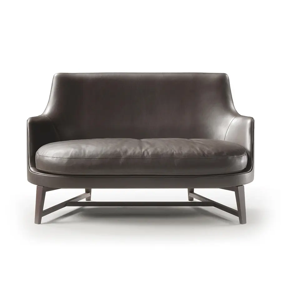 Eficaz síntesis de elegancia y calidad, el sofá Guscio presenta líneas envolventes y una confección impecable, características que acentúan su inclinación natural a decorar tanto áreas residenciales como hosteleras, tales como salas lounge, despachos directivos y boutiques bajo la bandera de una cálida intimidad. La estructura consiste en una carcasa en espuma de poliuretano estructural, mientras que el cojín del asiento es de pluma con una inserción de material no deformable. El lenguaje estético refinado que caracteriza al sofá Guscio también se expresa en el diseño de la base, que se propone en las variantes de madera maciza –nogal americano o fresno en varios tonos– o de metal en varios acabados. El sofá Guscio está disponible en el ancho de 128 cm, con una base de madera o de metal, y en el ancho de 220 cm, disponible solo en la versión con base de metal.