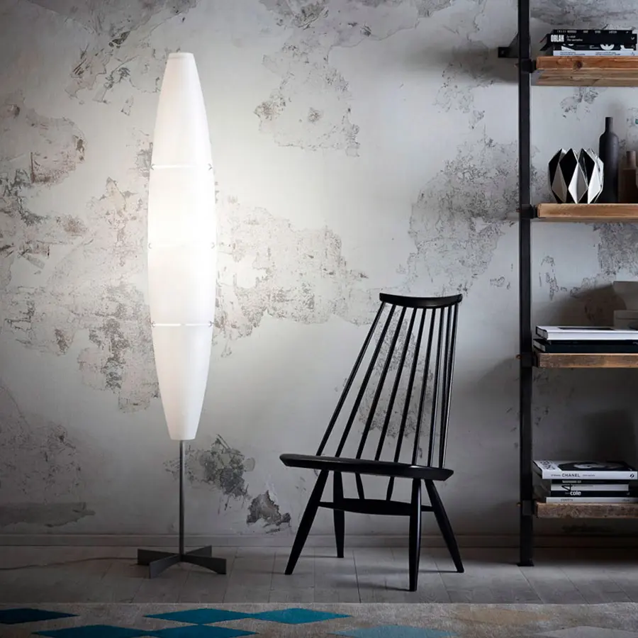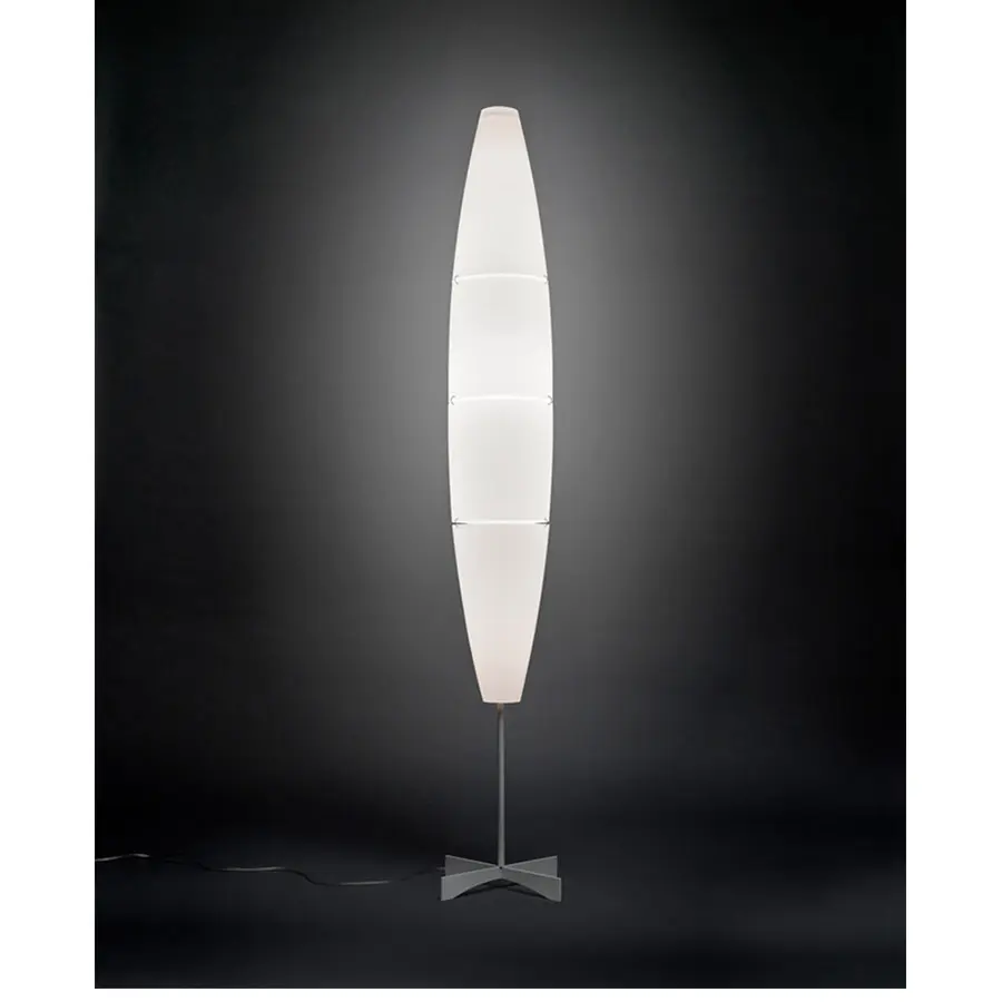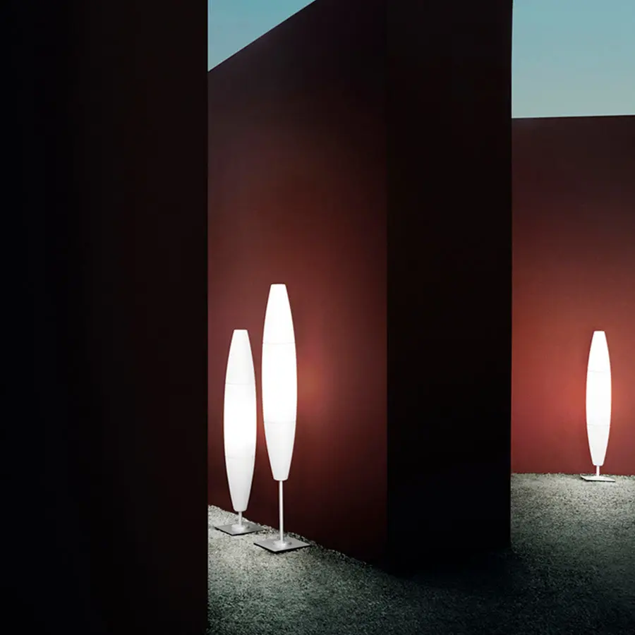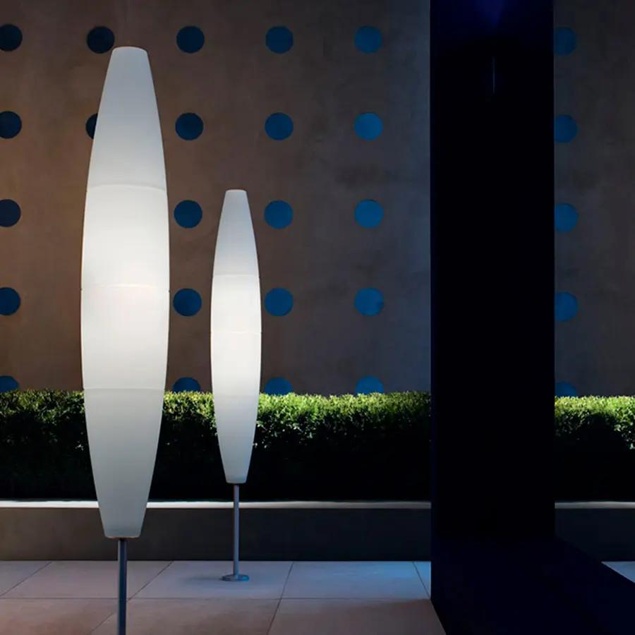 Lámpara de pie de luz difusa. Difusor formado por un único elemento en polietileno estampado en moldura rotacional con predisposición directa para el montaje en el soporte. Vástago, base y soporte del difusor en metal sometido a tratamiento de cataforesis capaz de otorgar una considerable resistencia a la corrosión y a continuación pintados con polvo poliéster. Se encuentran disponibles dos versiones en altura – alta y baja -y tres para fijación al suelo: base reposicionable, estaca o cilindro para enterrar. Cable eléctrico forrado con neopreno para uso externo sin interruptor en el cable, equipado con terminal de conexiones IP 65 o IP 44 para los países que disponen de una segunda clavija Schu. ko.CEE 7/7. LED retrofit. Adecuado para lugares humedos. No dimerable