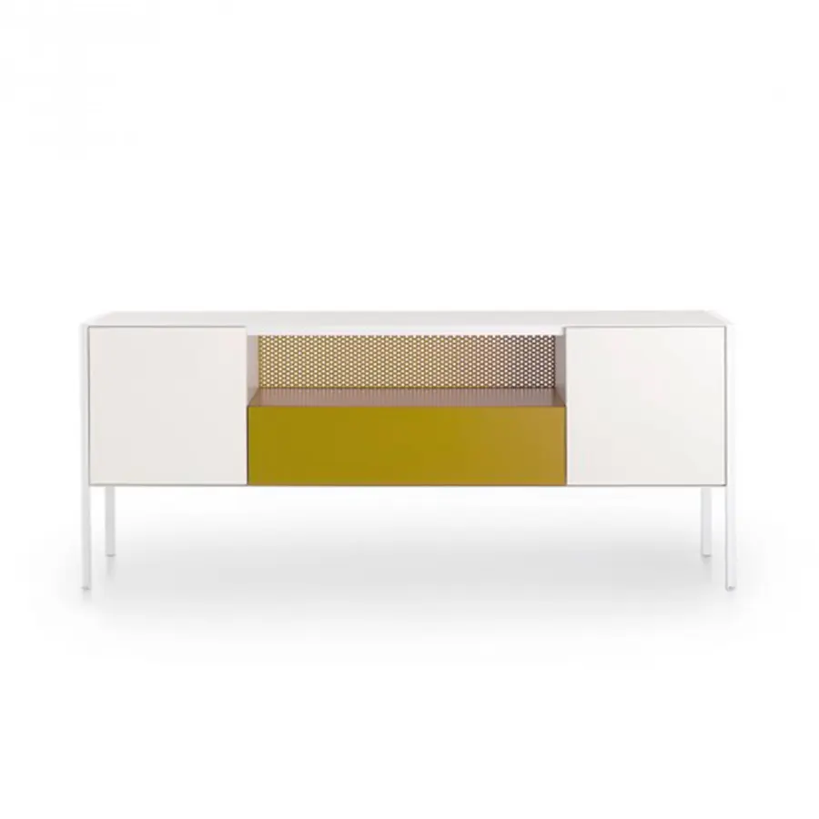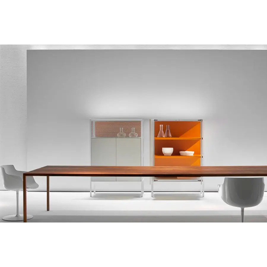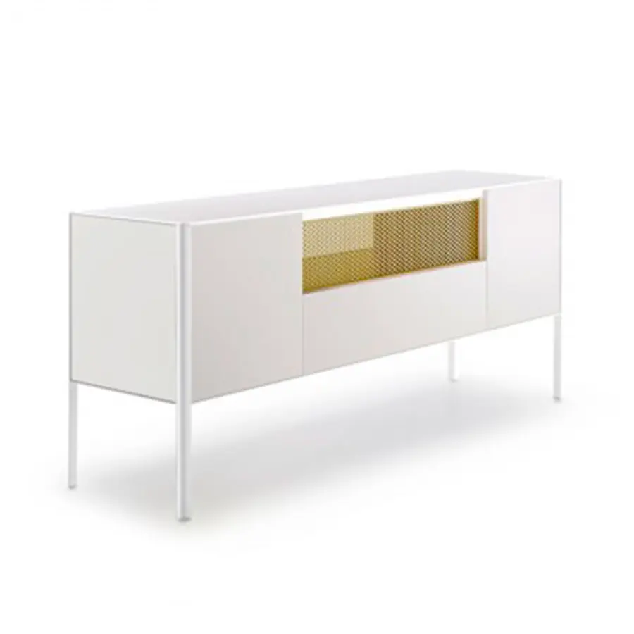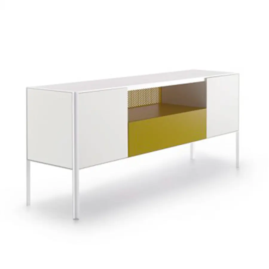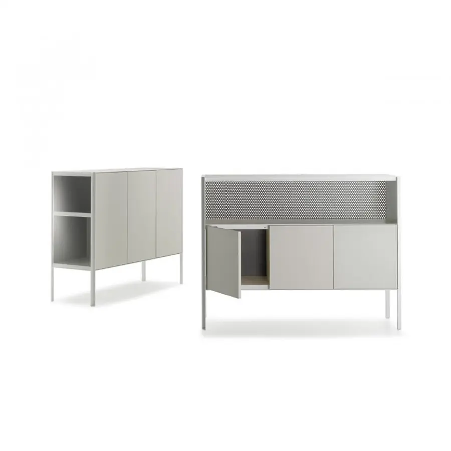 Sistema de unidades de almacenamiento con puertas, cajones y compartimentos abiertos para los diferentes entornos domésticos, de oficina y públicos. Colección compuesta por diferentes unidades de almacenamiento en términos de combinaciones dimensionales y equipamiento frontal.