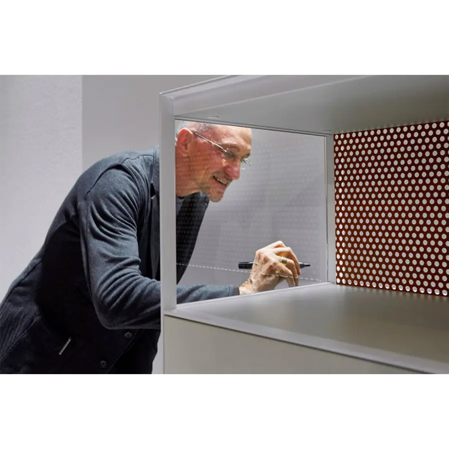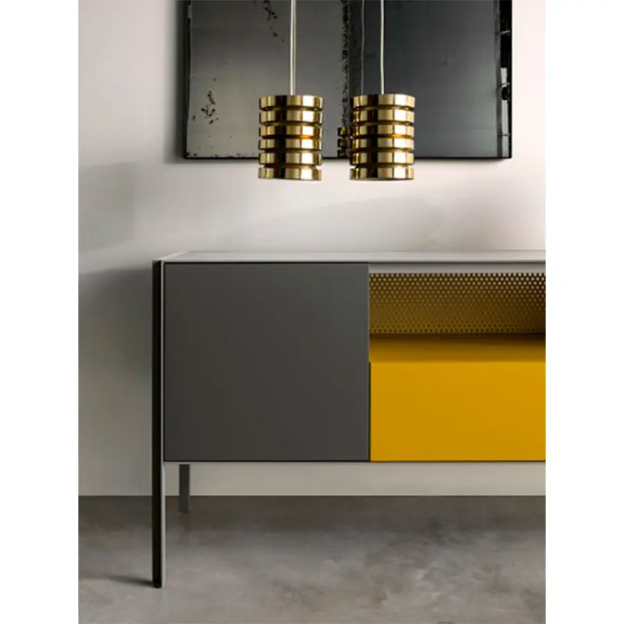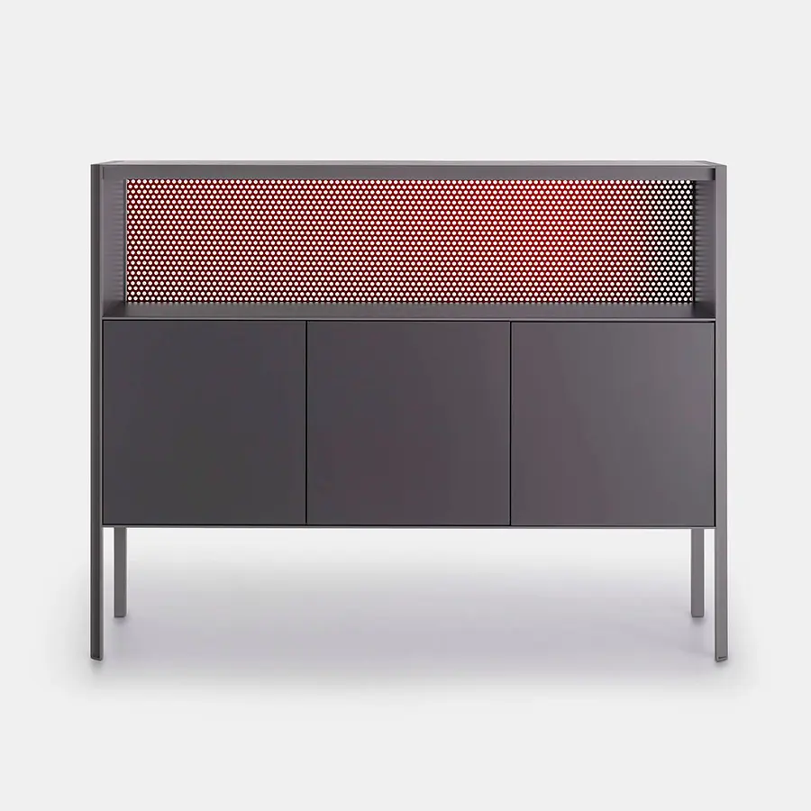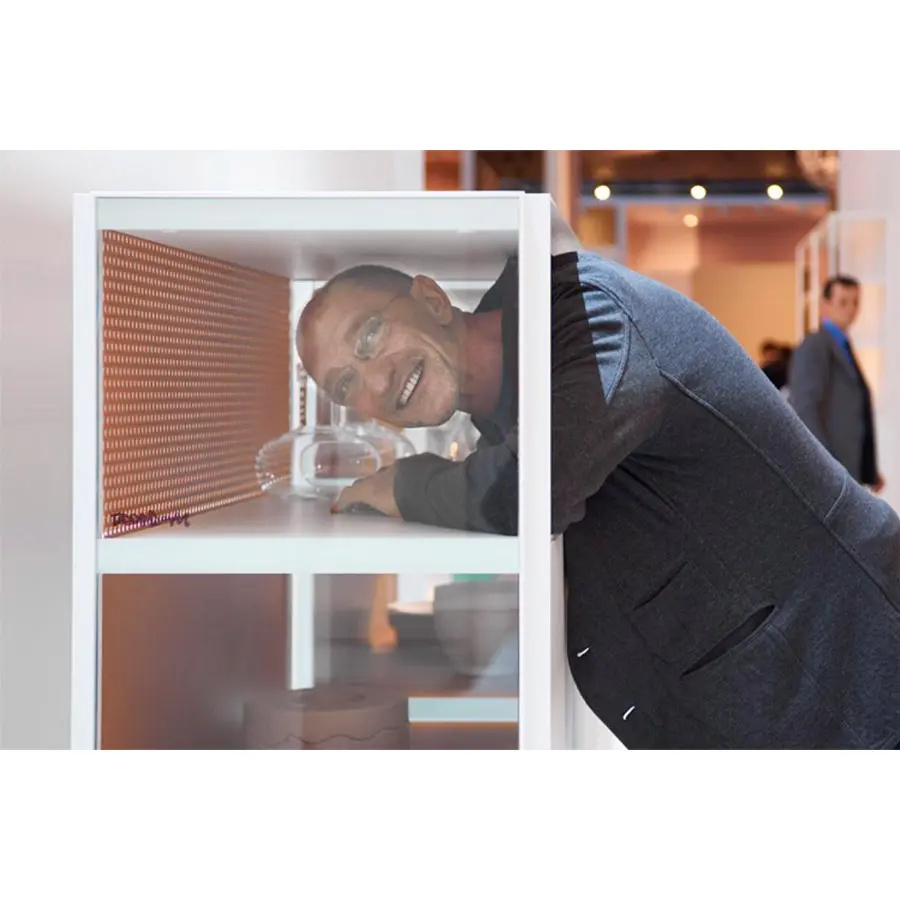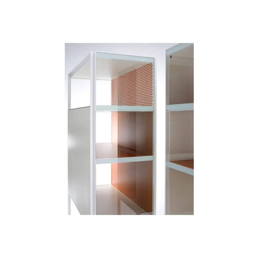 Cada unidad de almacenamiento se puede personalizar eligiendo el color del panel posterior del gabinete, en las diferentes opciones de lacado mate disponibles: blanco marfil, gris medio, rojo oscuro, amarillo okra, naranja oscuro y azul petróleo.