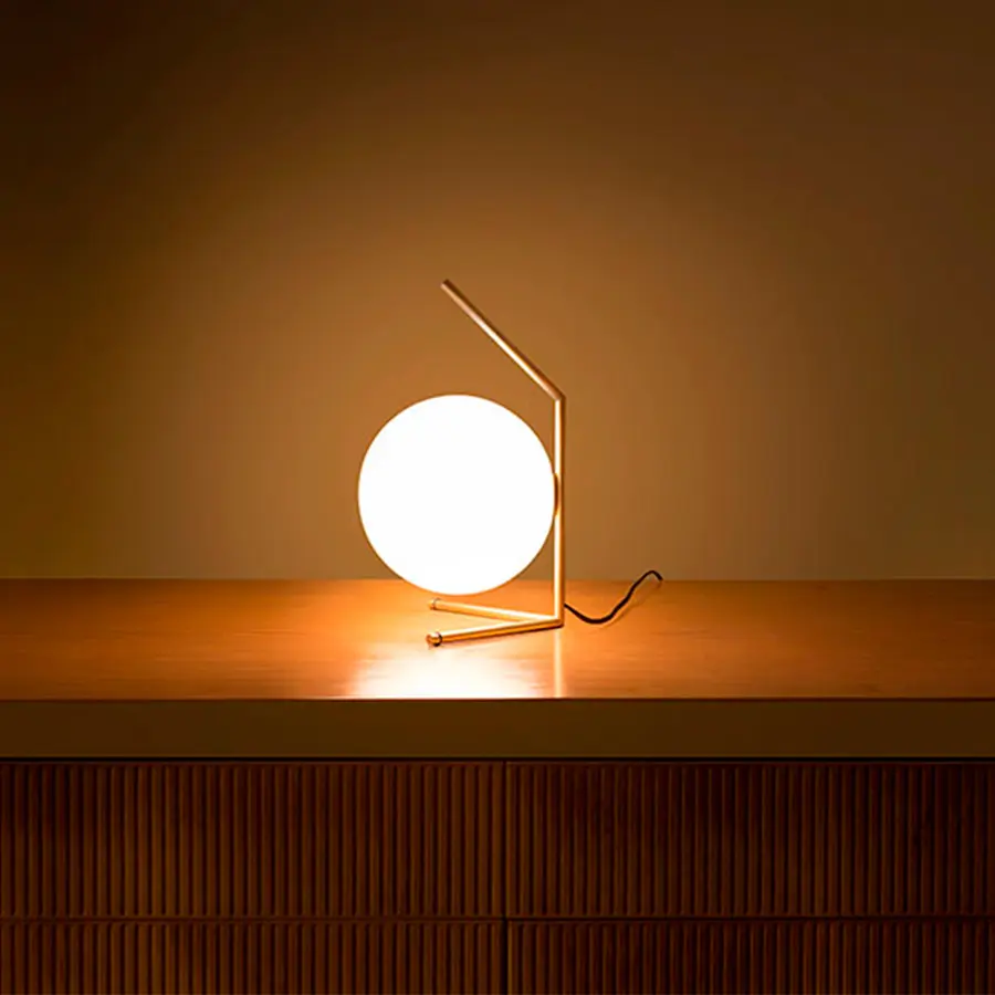 El diseño toma la forma de una esfera que está perfectamente equilibrada en el borde de una barra y bajo esta idea surgen todas las lámparas de la colección IC. Anastassiades se inspiró en un video online de un malabarista haciendo un número con esferas, moviéndolas sobre sus brazos y el borde de sus dedos.